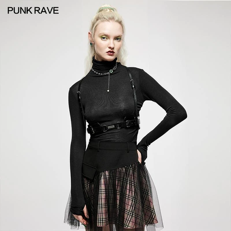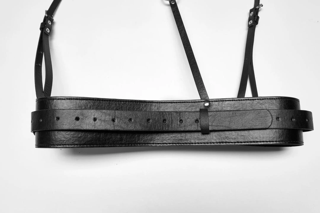 Fabulous PU leather harness from Punk Rave featuring adjustable shoulder straps and adjustable double buckled belt with D-rind detail and Punk Rave bar. For the perfect fit and fabric composition, please see Punk Rave’s size guide in the images.
