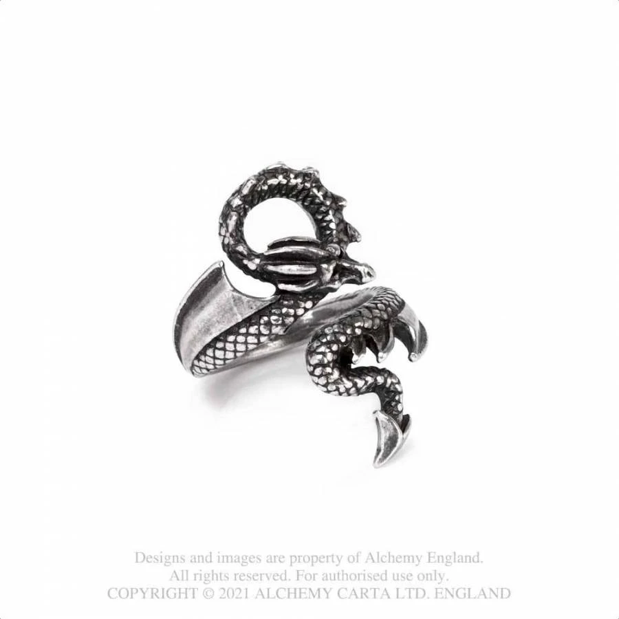 An exquisite polished pewter dragon ring, this tortuous personal miniature dragon coils itself around your finger.