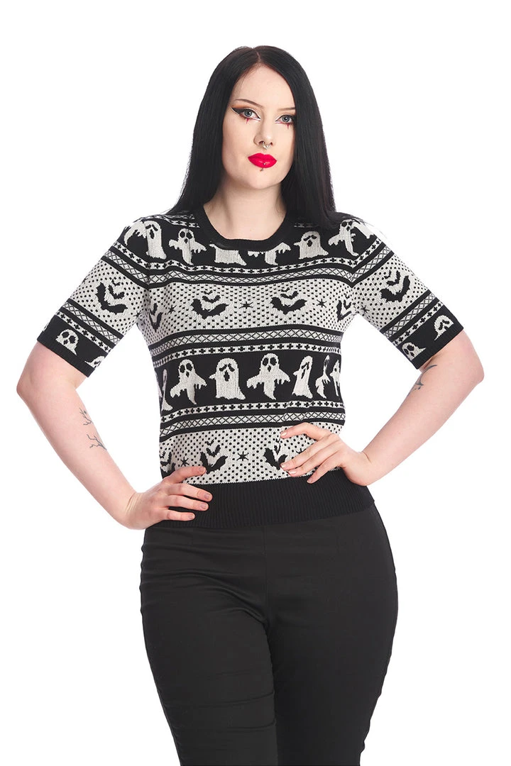 Fabulous short sleeve jumper from Banned Apparel with round neckline and a ghostly design.