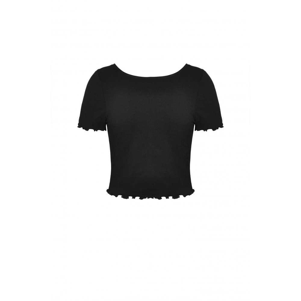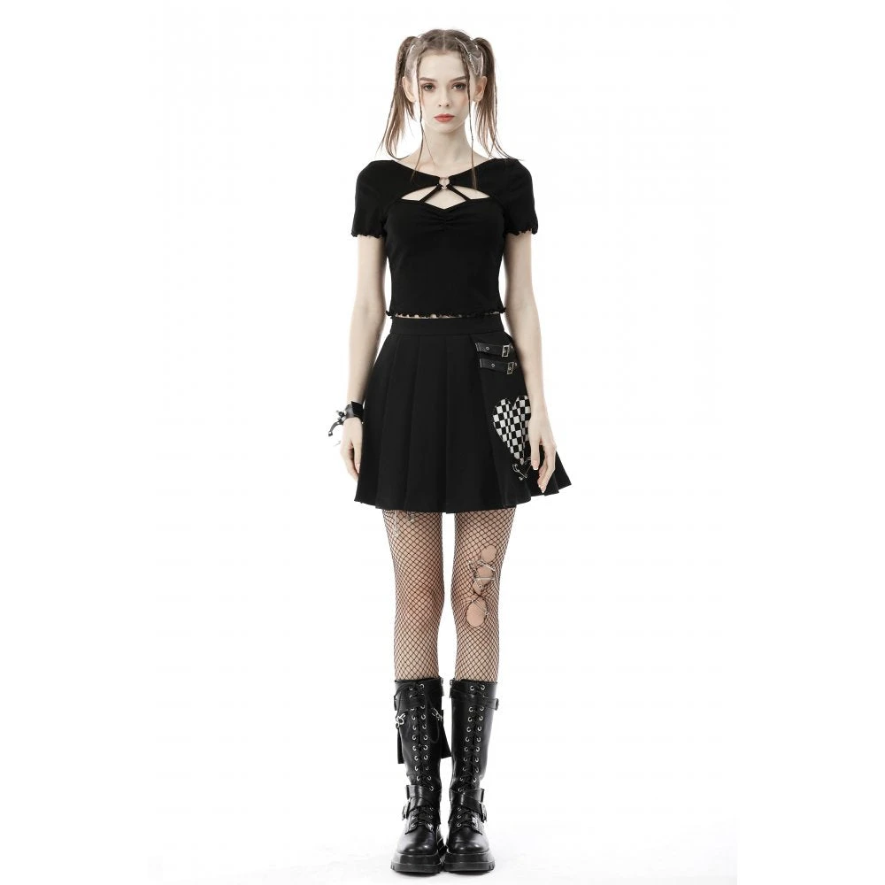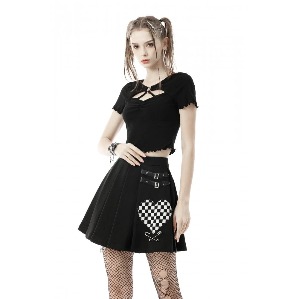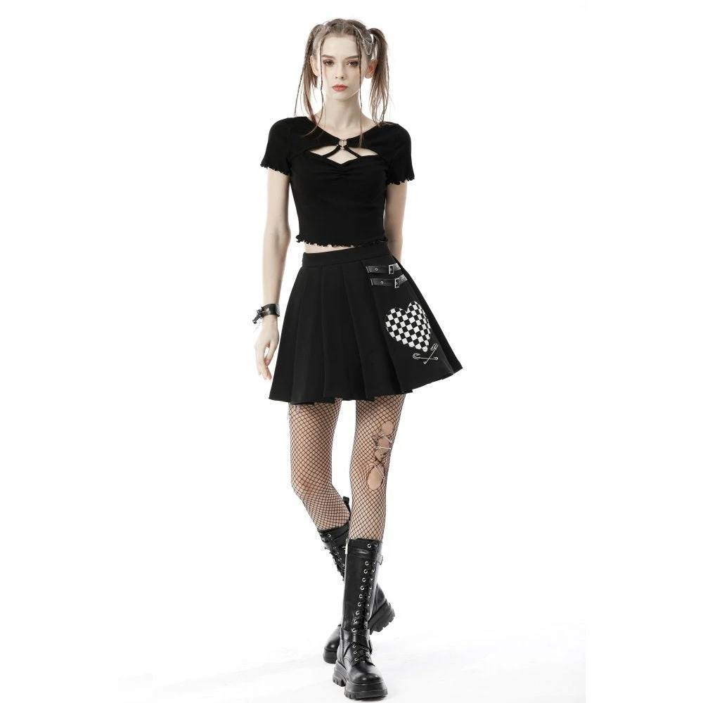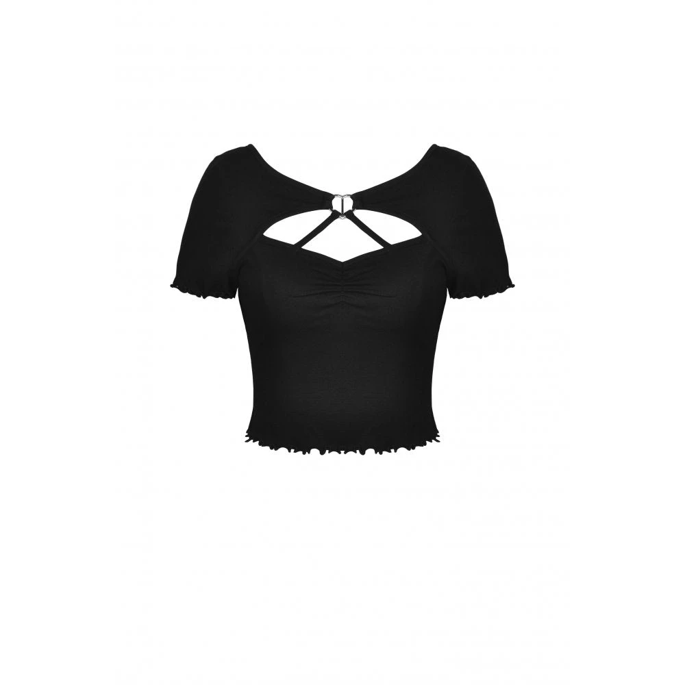 Sweet little tee from Dark in Love featuring a gathered bust and cut out details. For the perfect fit and fabric composition, please see Dark in Loves size guide in the images.