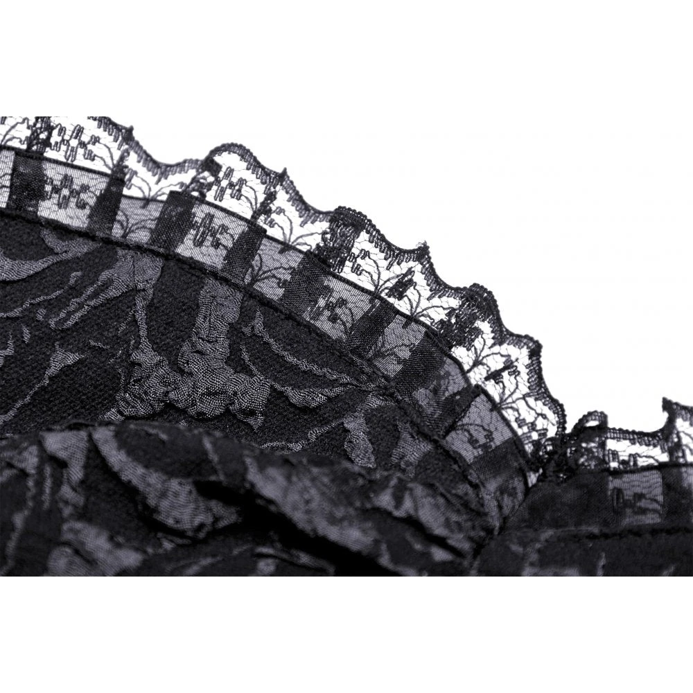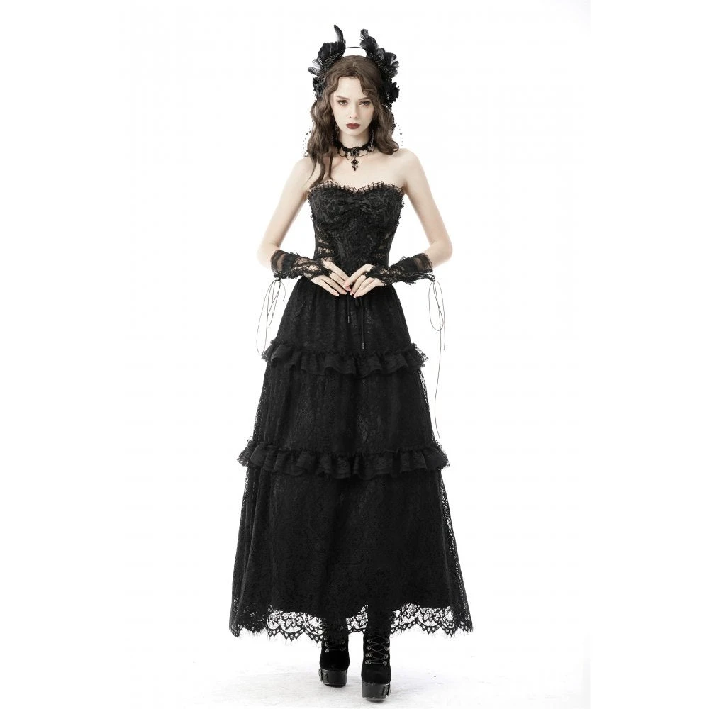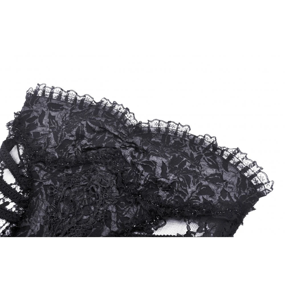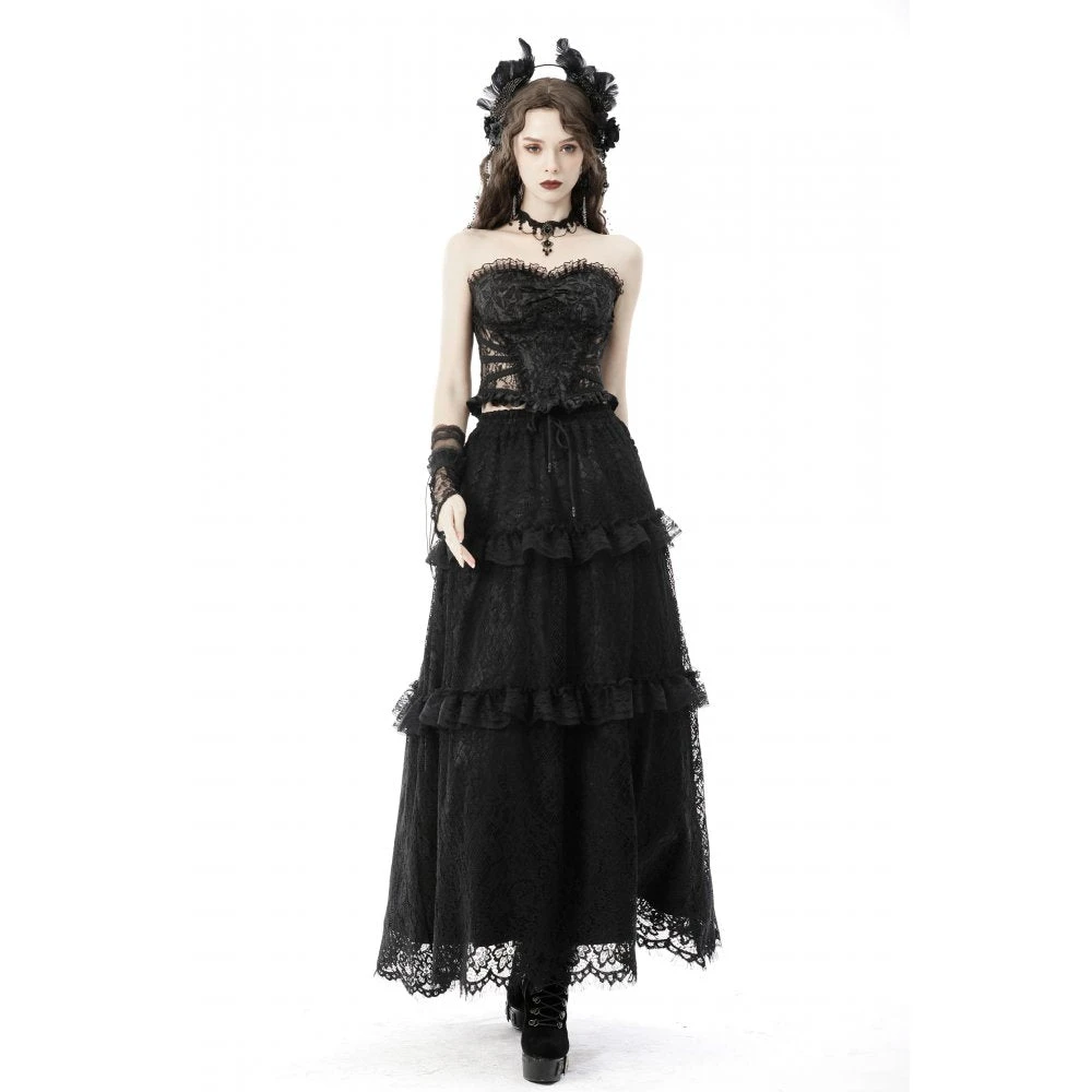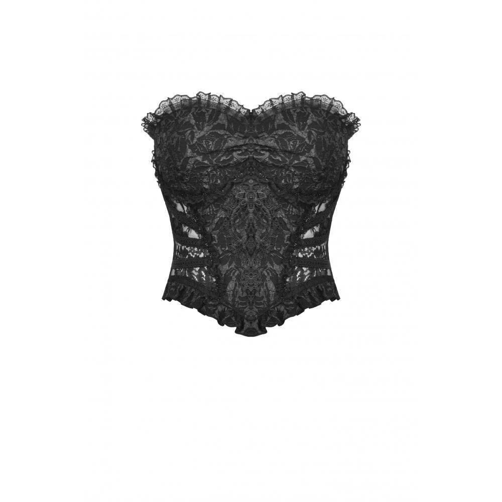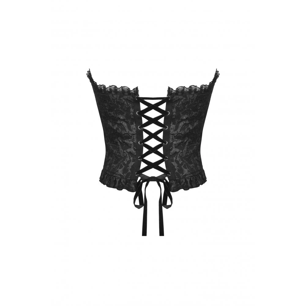 Seductive and elegant black corset top by Dark In Love with black ribbon lace up back. This gorgeous head turning corset top features delicate lace detailing and looks amazing on!
