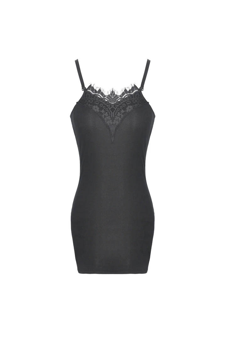 Super cute bodycon dress from Dark in Love with adjustable spaghetti straps and lace applique to the neckline. For the perfect fit please see Dark in Loves size guide in the images.