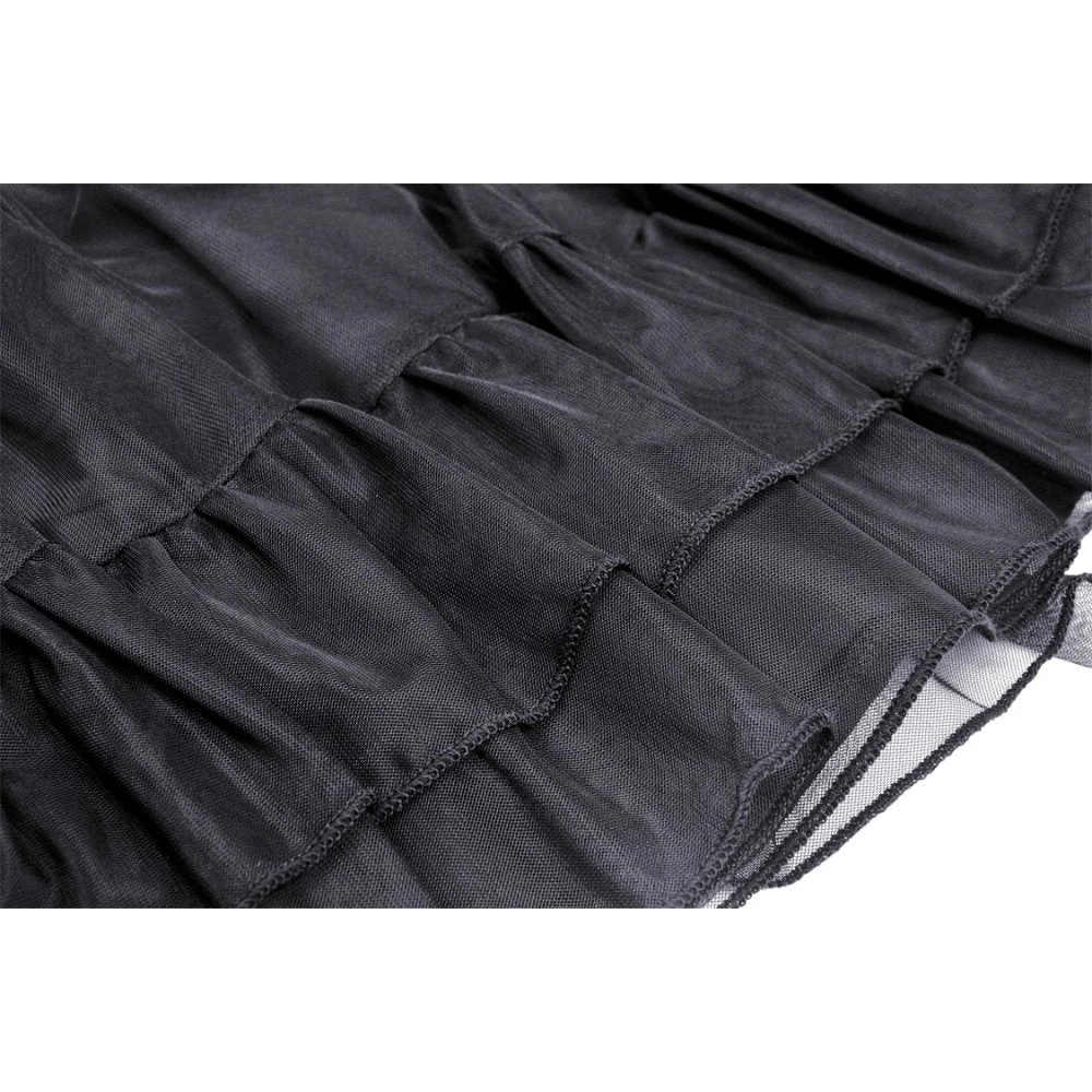 Stylish and versatile black mini skirt from Dark in Love made from a soft fabric with mesh ruffle layers! This must-have skirt features an pockets to store all your essentials and also has metal hardware details and chains to give it a little extra attitude.