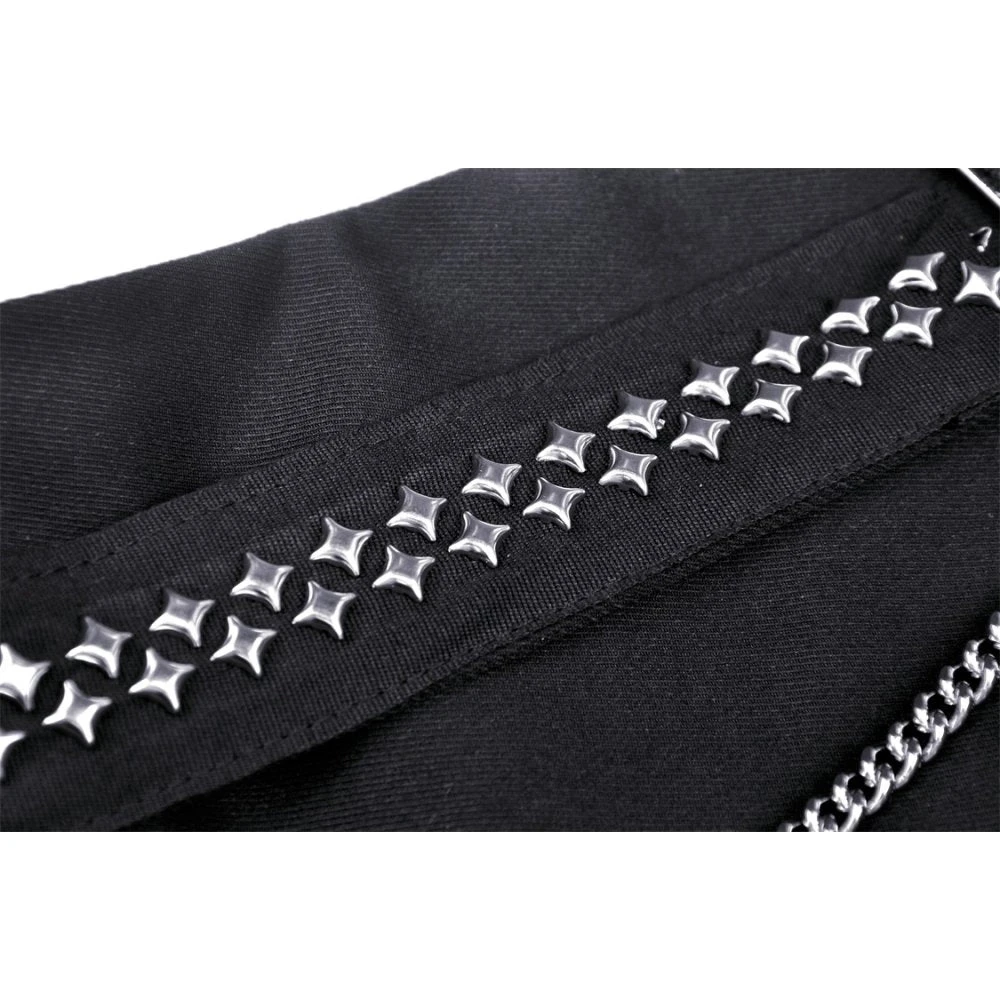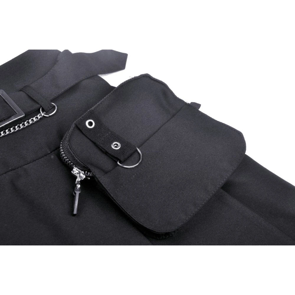 Stylish and versatile black mini skirt from Dark in Love made from a soft fabric in a classic pleated style! This must-have skirt features an attached zip up bag to store all your essentials and also has metal hardware details and chains to give it a little extra attitude.