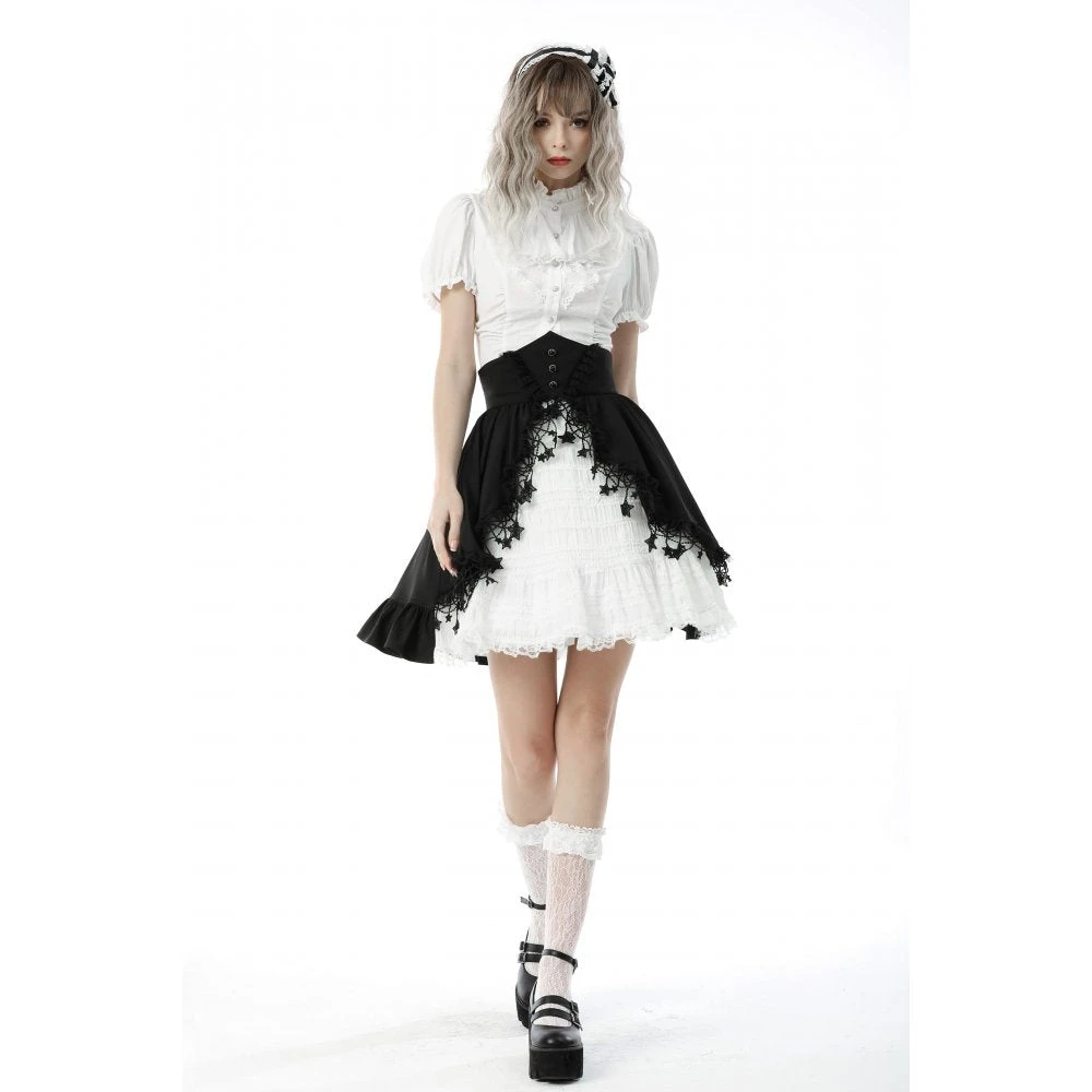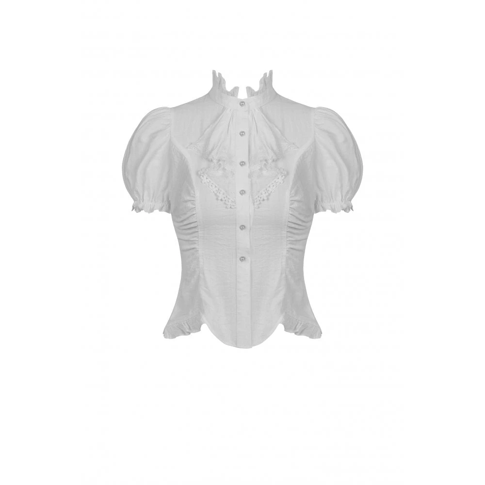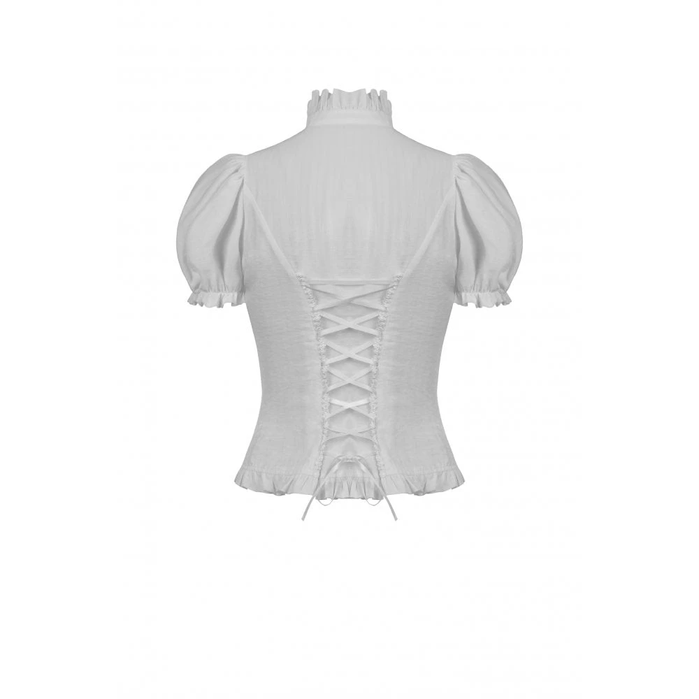 Lovely fitted blouse from Dark in Love featuring short puff sleeves, ruffle collar and princess seams. For the perfect fit and fabric composition, please see Dark in Loves size guide in the images.