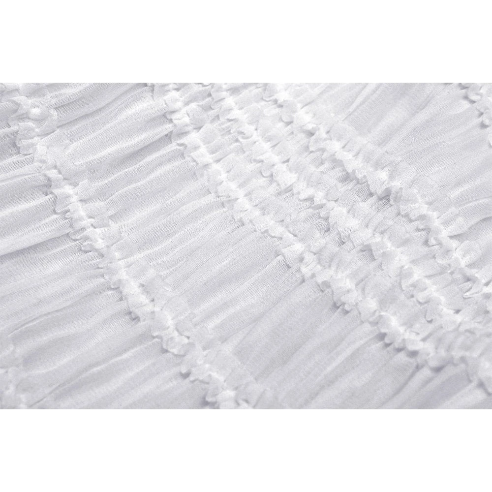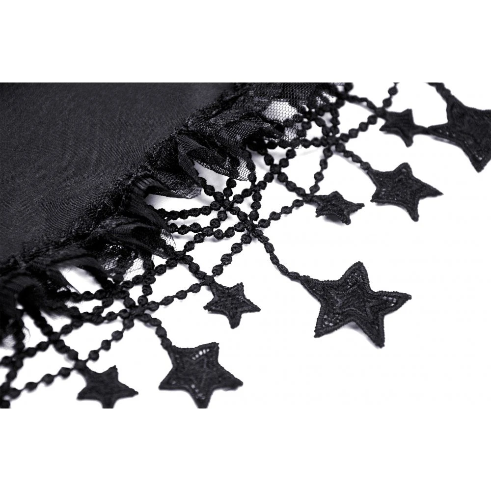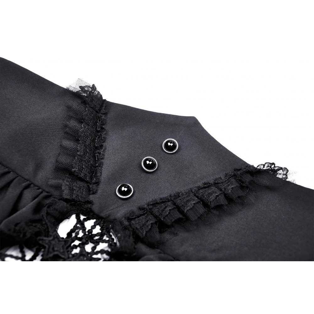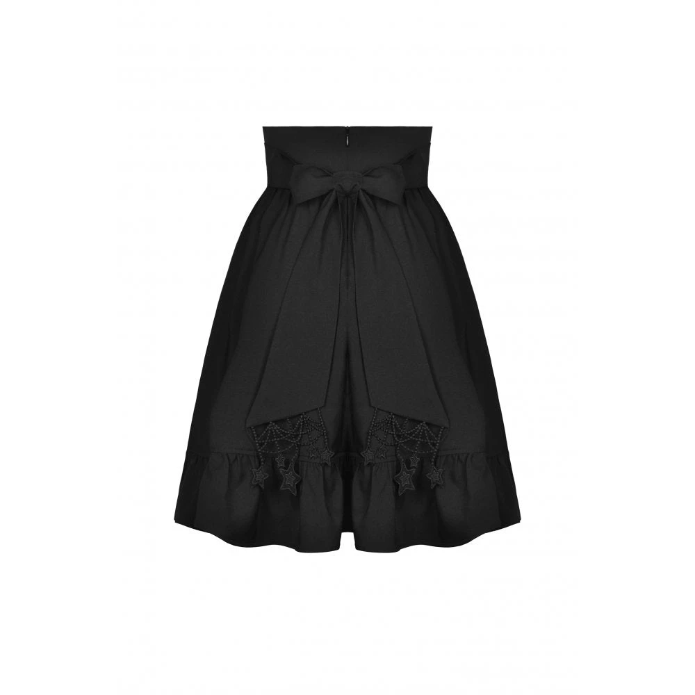 You’ll love this stunning high waisted black and white skirt from Dark in Love with white under layer and black waistband and over layer! This lovely skirt features hanging stars, and a layered skirt that will flatter your figure to perfection. This amazing dress has a black ribbon bow tie and comes with a spare button.