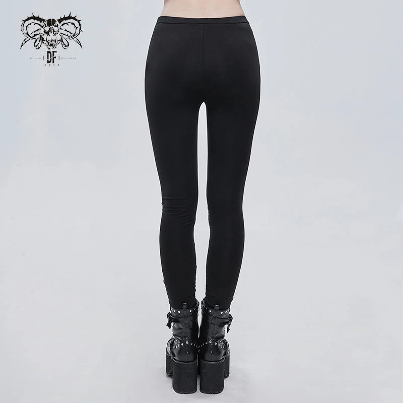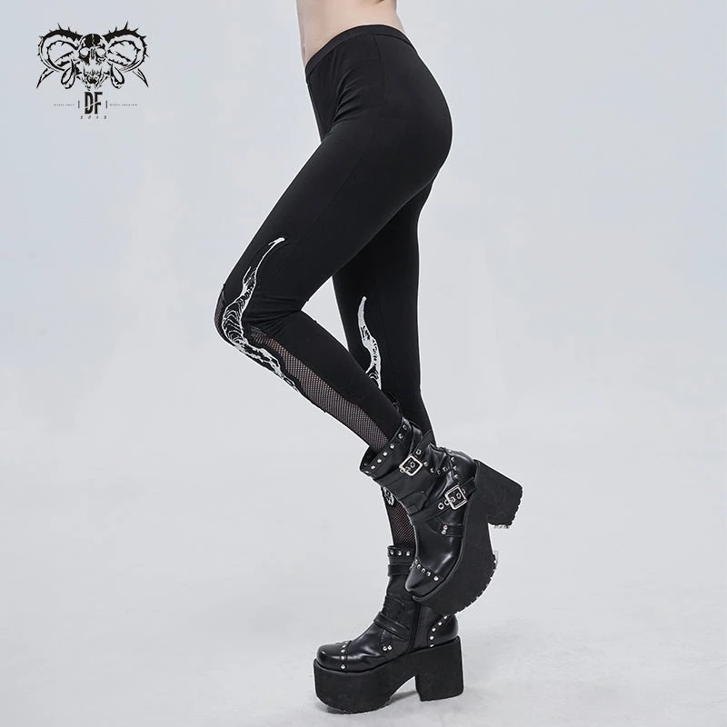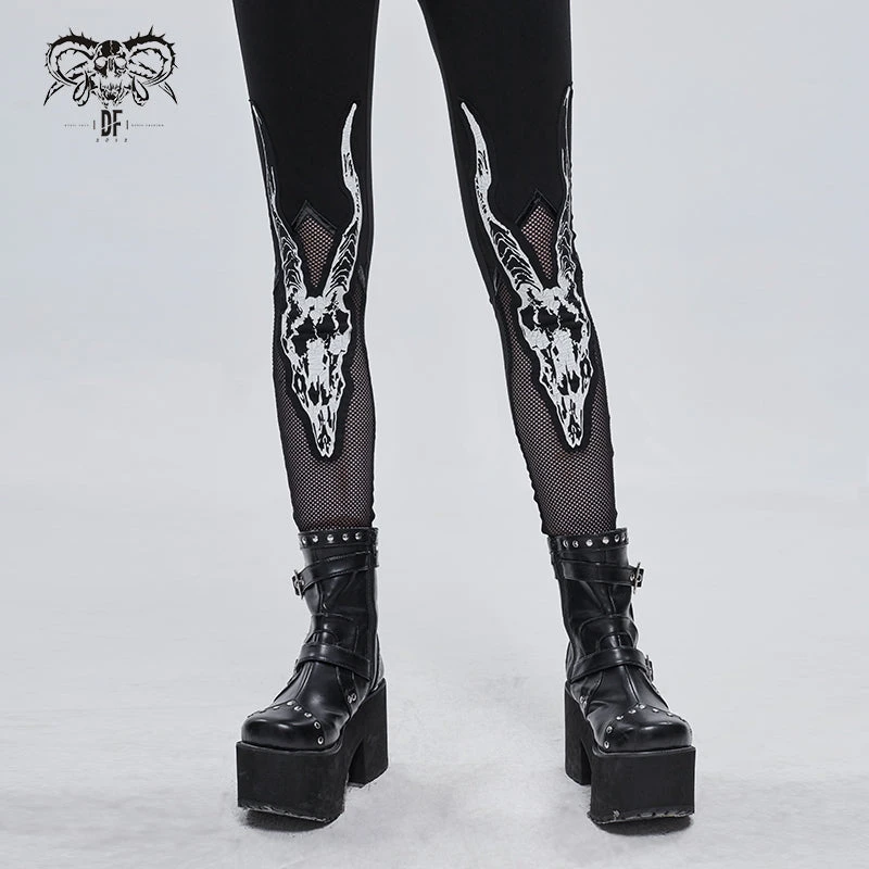Amazing black leggings from Devil Fashion with white contrast Baphomet print. These must-have leggings are made from a soft stretchy lightweight cotton fabric. These gorgeous black leggings bring extra edginess with mesh panels and white Baphomet print!