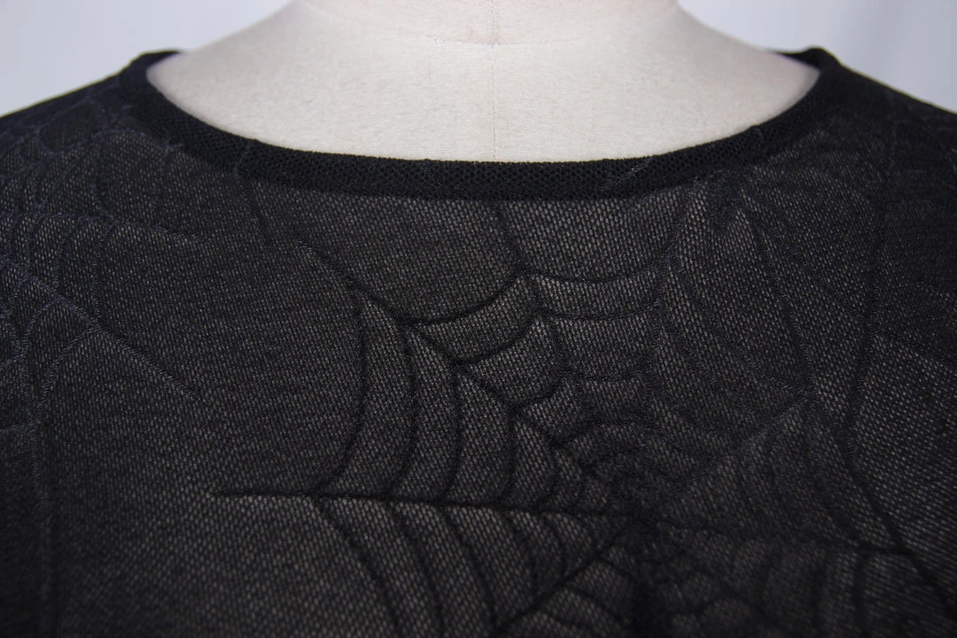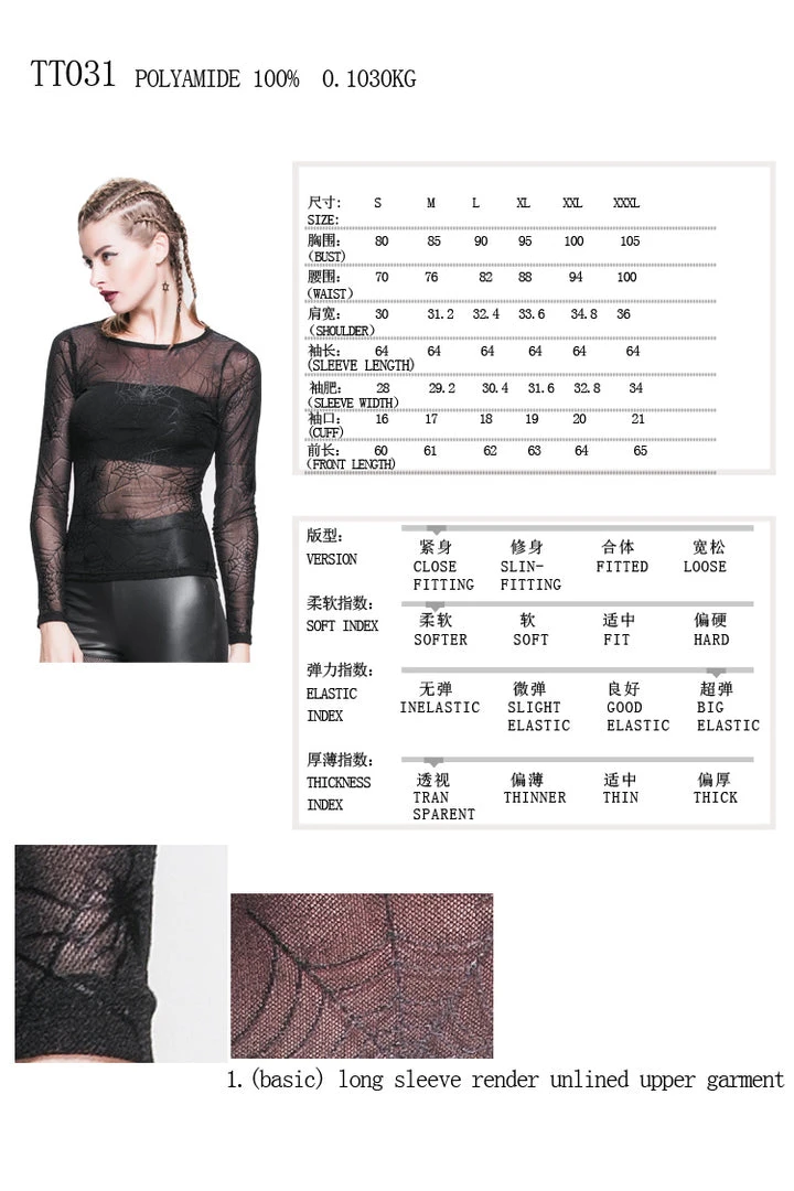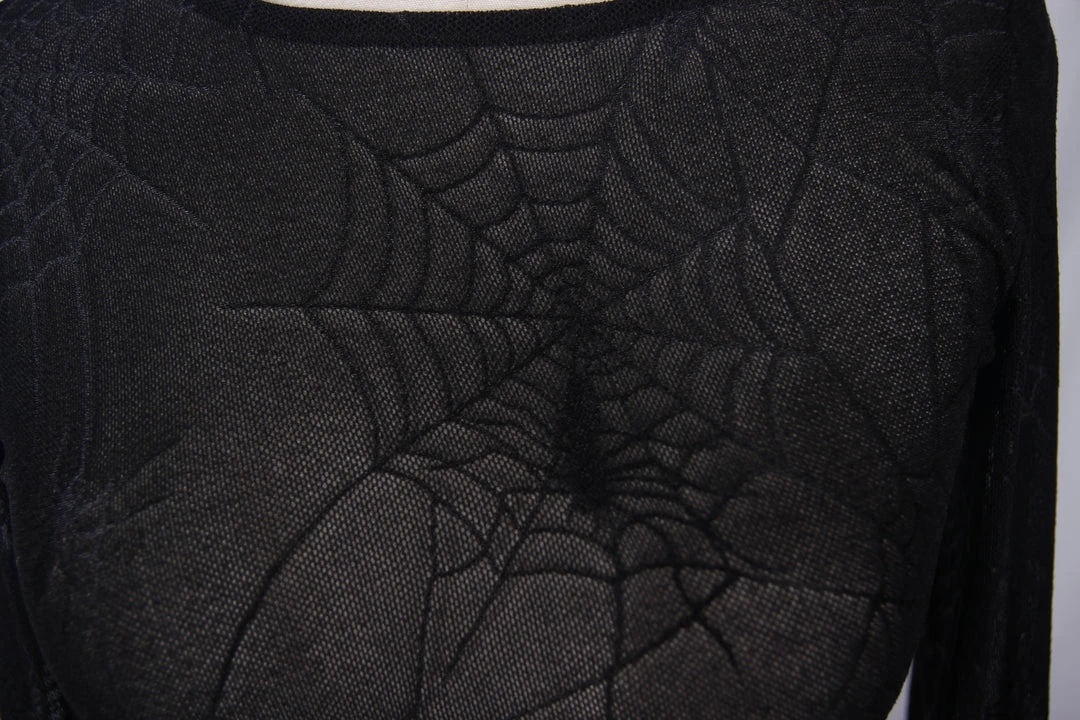 This lovely mesh top from Devil Fashion features an awesome design with spiders hanging out on their webs. Long sleeves, round neck and in a soft stretchy cotton mix.