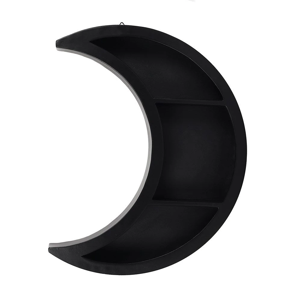 An awesome, well made, crescent moon shelf to beautifully display your favourite potions and witchy trinkets. In black with a soft subtle sheen, comes ready with super helpful wall triangle ‘D; ring hanger. With two built in mid shelves this coffin shelf will become home to an impressive amount of necessities. If you are outside the UK, please note this item is too large to send via normal post and has to be sent by courier which is expensive. Please also be aware of import taxes outside of the United Kingdom.