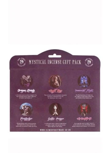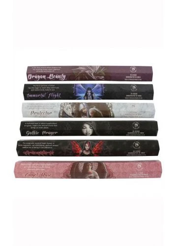 This beautiful Anne Stokes gift pack contains 6 packs of mystical inspired incense sticks including Gothic Prayer, Dragon Beauty, Angel Rose, Aracnafaria, Protector and Immortal Flight. Each individual pack of these gorgeous scents included in the gift box includes 20 sticks for burning.