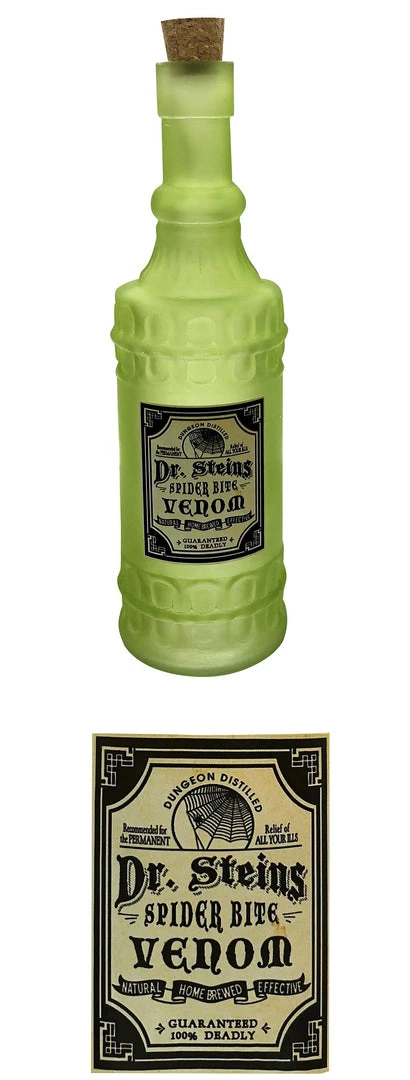 Awesome decorative glass bottle from Gothic Gifts with a cork stopper and vintage style label.