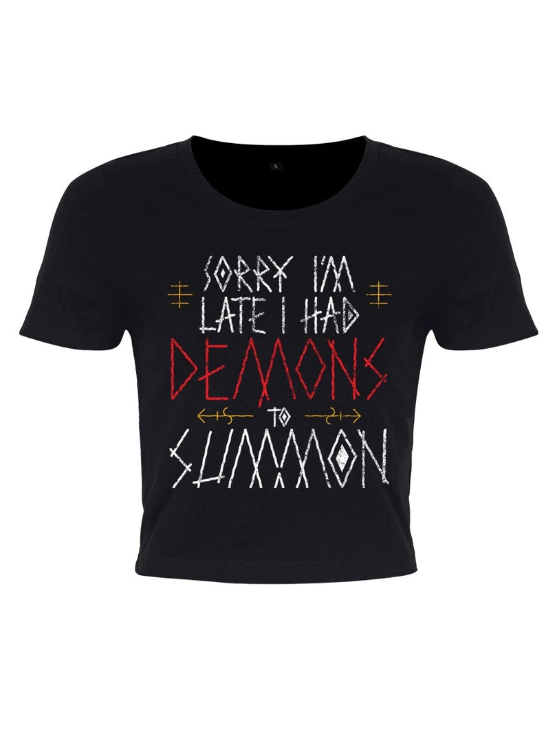 This awesome crop top features the text ‘Sorry I’m Late I Had Demons To Summon’, a perfect top that looks amazing on.