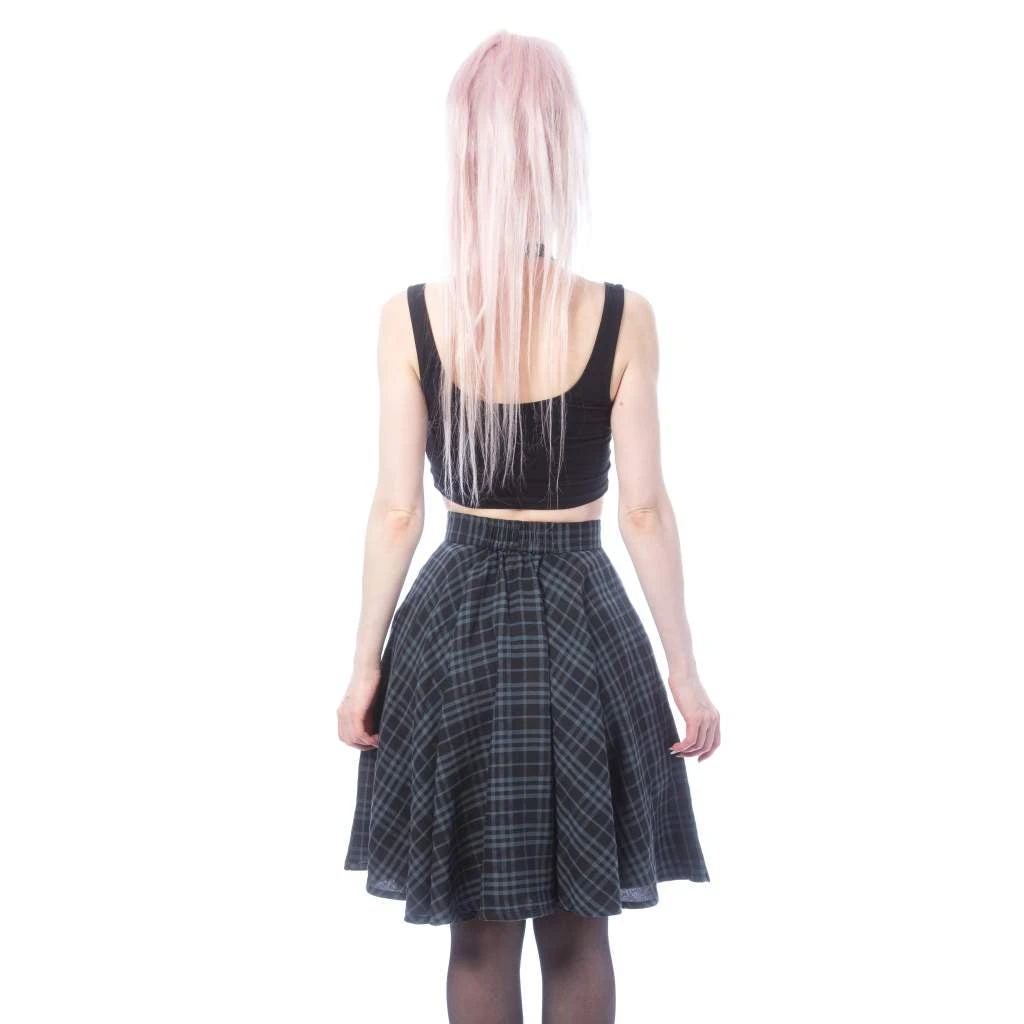 It has POCKETS! This lovely grey check skirt from Heartless features side seam pockets and a front zip fastening. With an elasticated back panel on the waistband for the perfect fit.