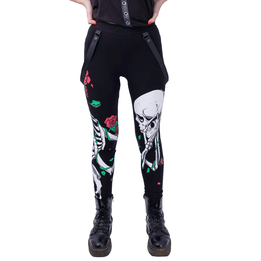 Striking black leggings from Innocent with statement straps. These standout leggings features a standout skull contrast print. Made from a soft stretch cotton fabric and looks great no matter what you wear it with!