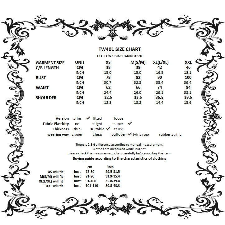 - For the perfect fit please see Dark in Love’s size guide in the images.