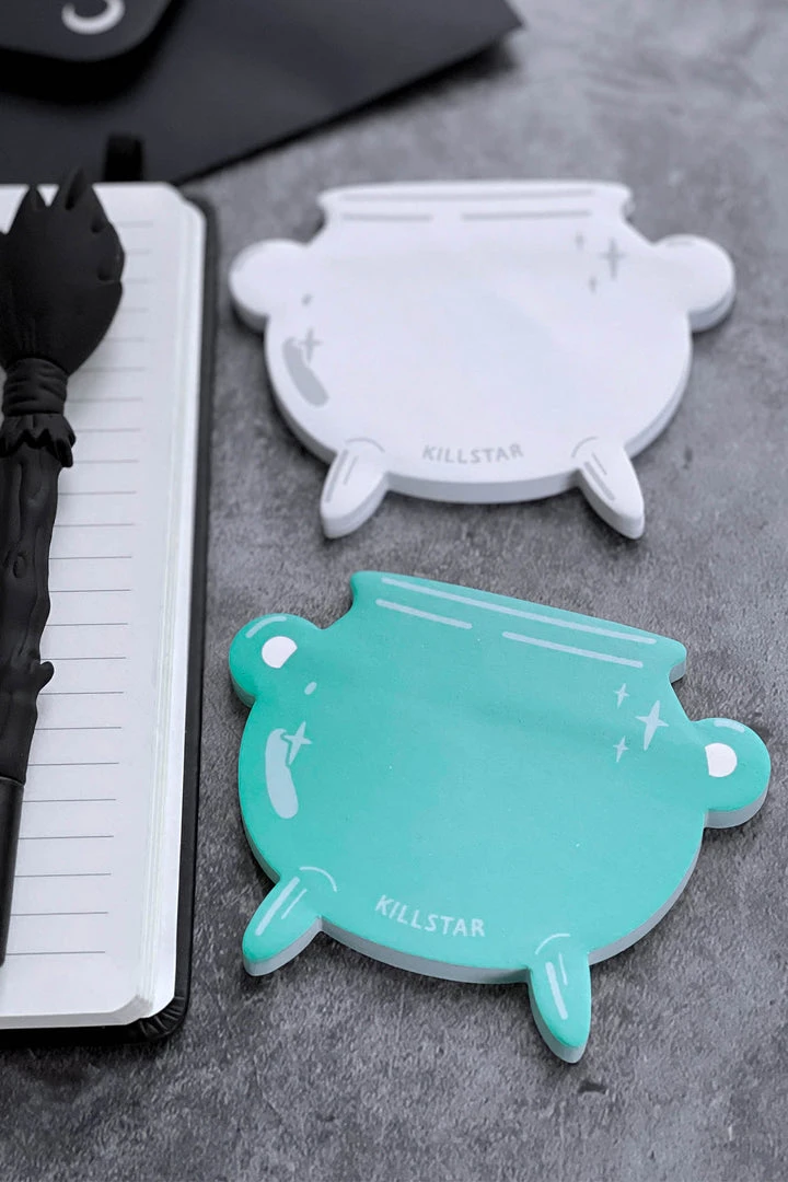 Cauldron shaped sticky notes in green and white with custom design. Perfect for your to-do list! Makes a great spooky gift!