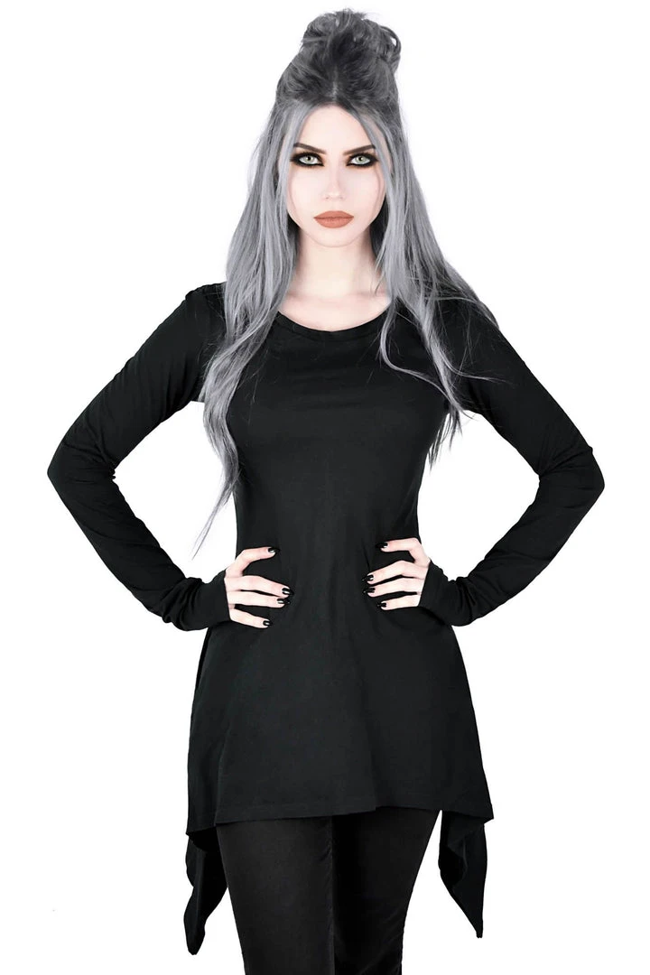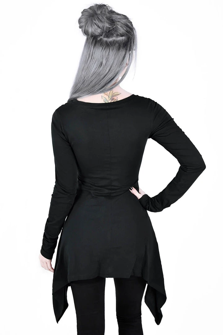 Awesome long sleeve Gothic top from Killstar! The stunning Cora top is an everyday essential featuring long sleeves and points hem. Measuring approximately 30″ from shoulder to hem this gorgeous top looks amazing on.