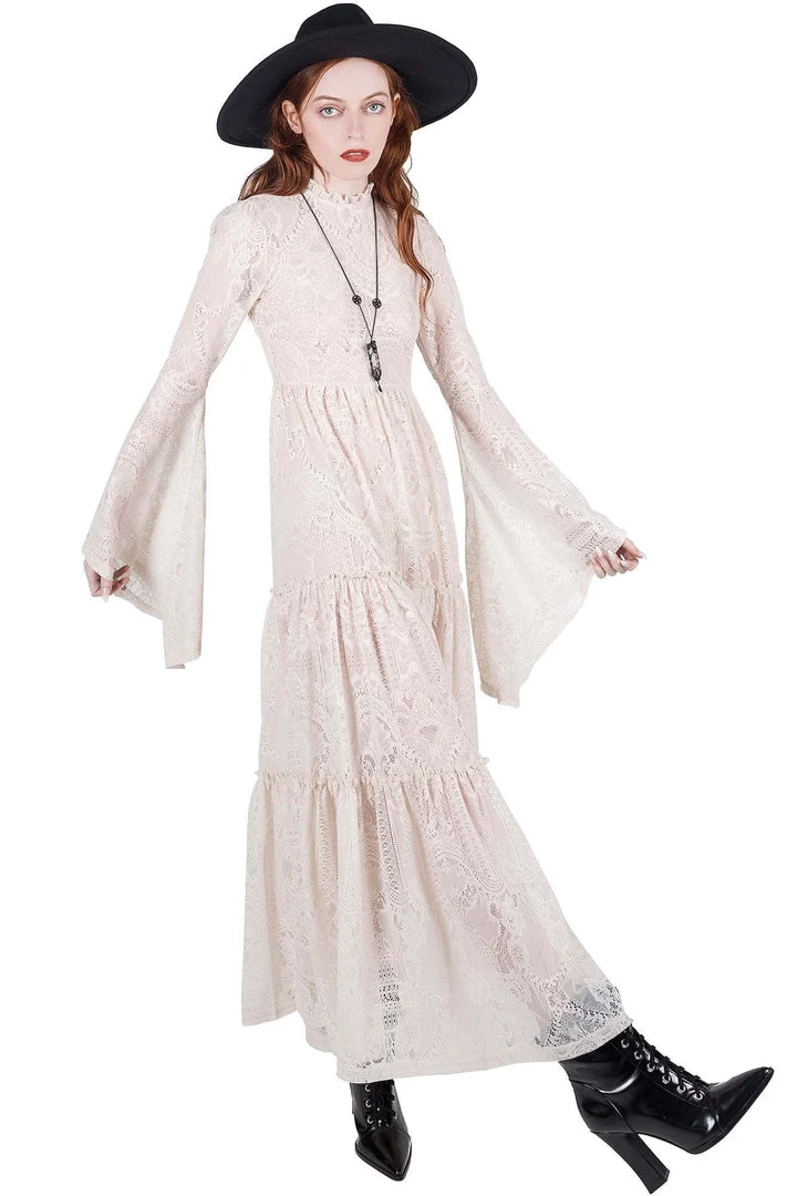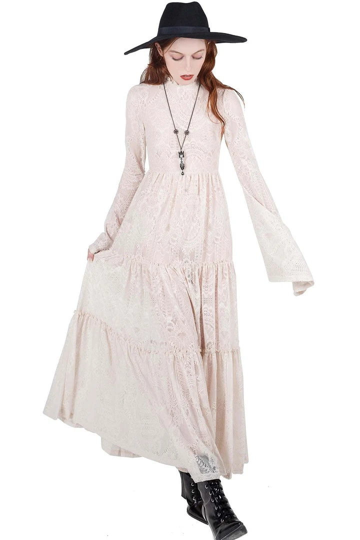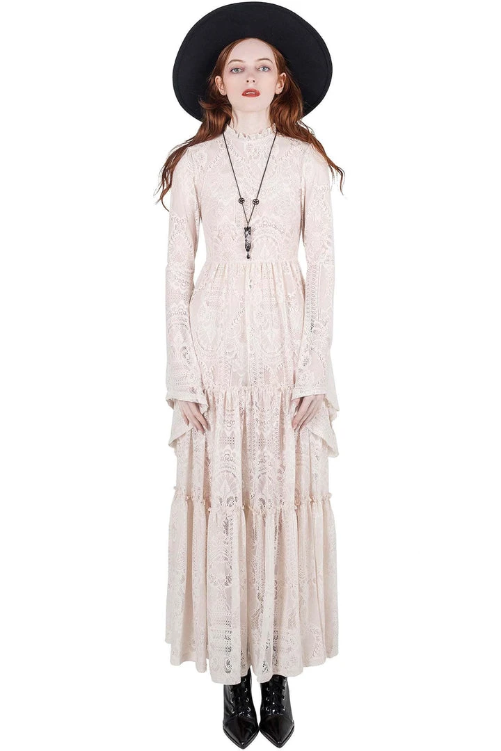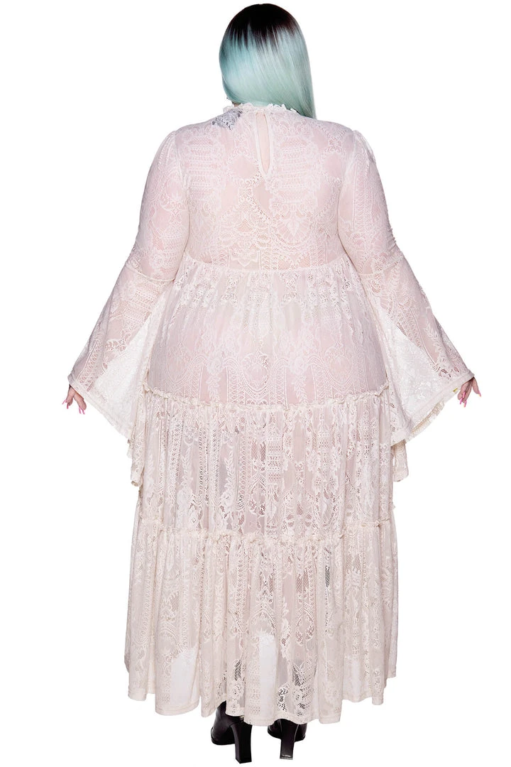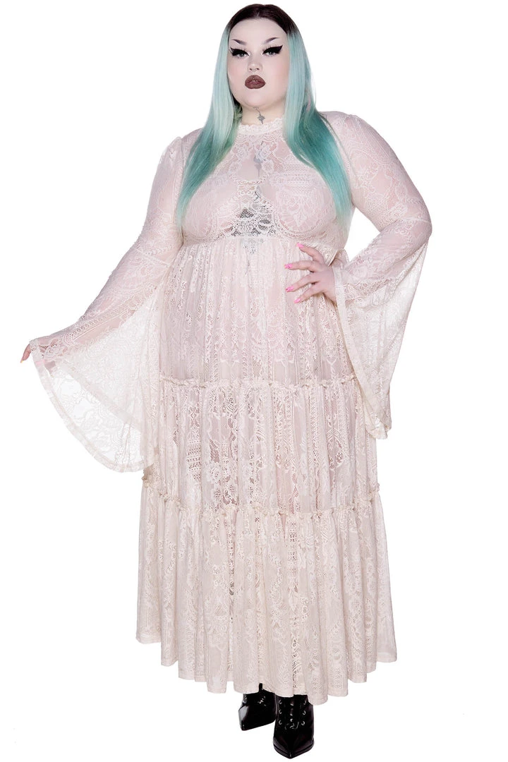 Killstar Hecate Lace Maxi Dress in Ivory: The amazing Hecate maxi dress from Killstar channels a vintage vibe with its fitted yet flowing elegant style.