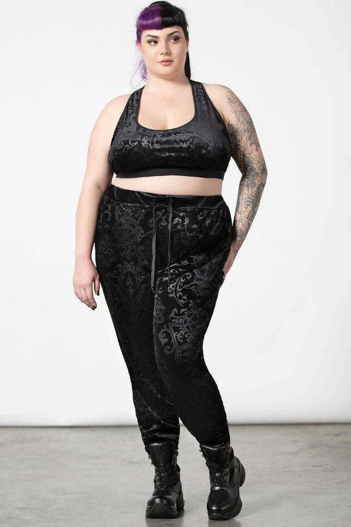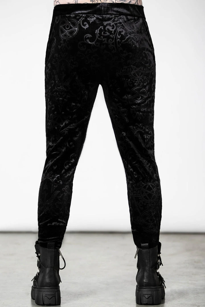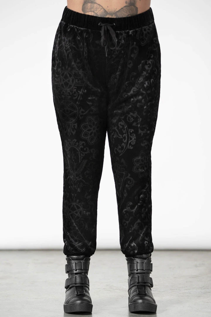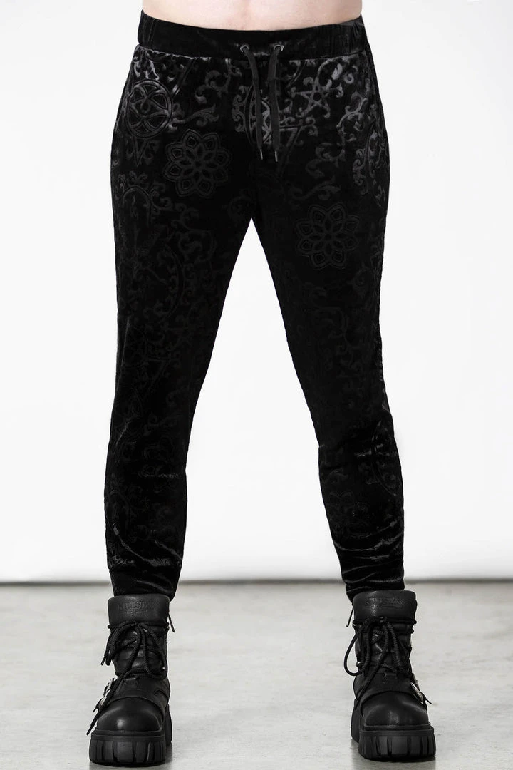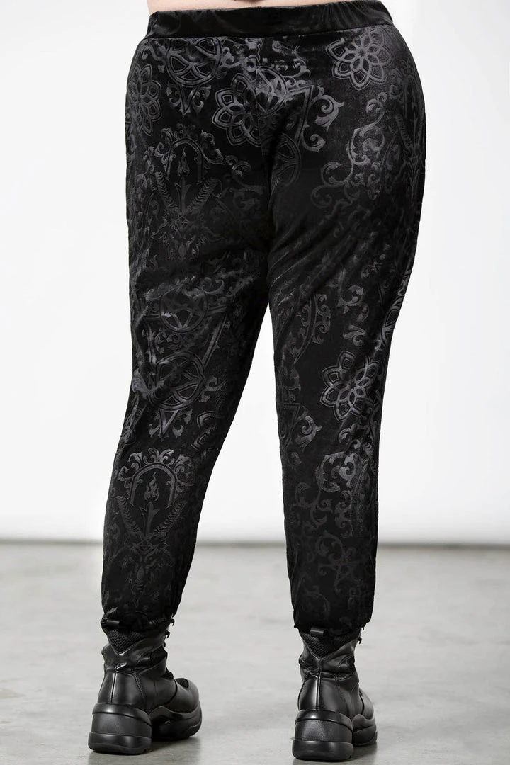 These stylish and practical black jogging bottoms are made from a luxury soft burnout velvet fabric in a long length slightly fitted style that looks good on everyone! These longline black unisex tracksuit bottoms feature stretchy fabric, cuffs, convenient pockets and a drawstring wide waistband.