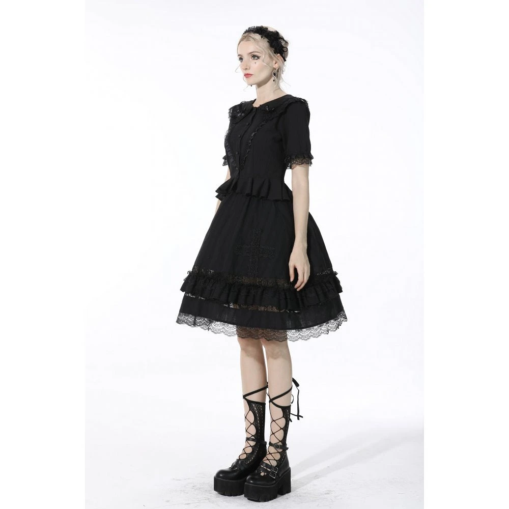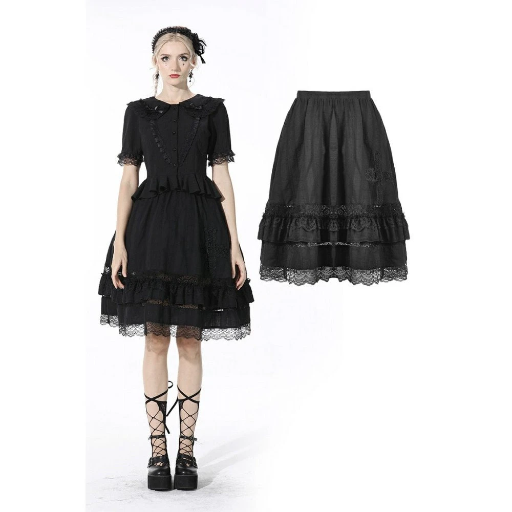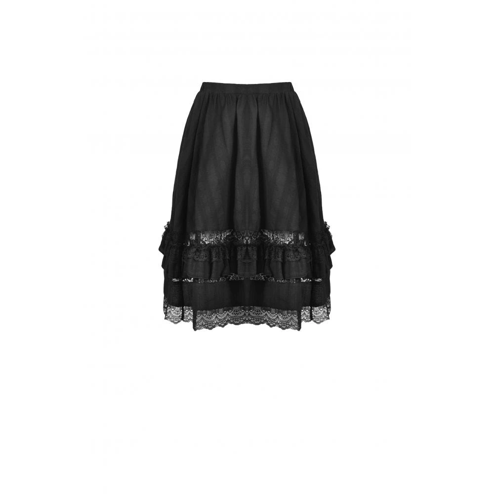 Elegant and flowing black mid length skirt by Dark In Love. This classic black midi skirt is made from soft cotton with intricate lace detailing! Matches perfectly with the Adalynn Chiffon Blouse!