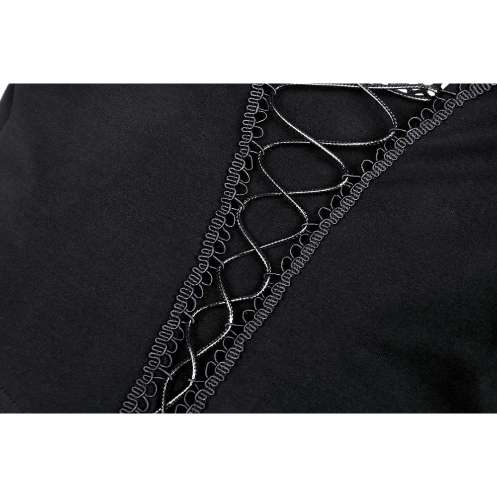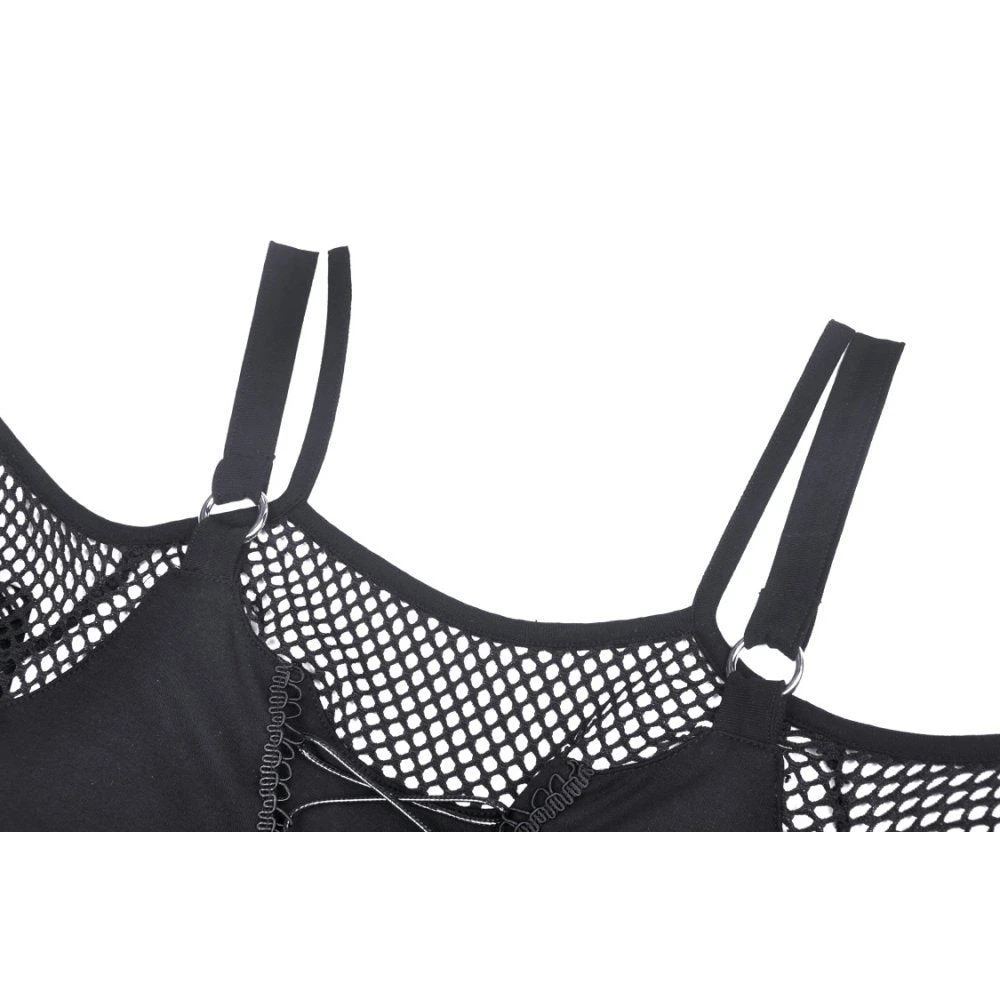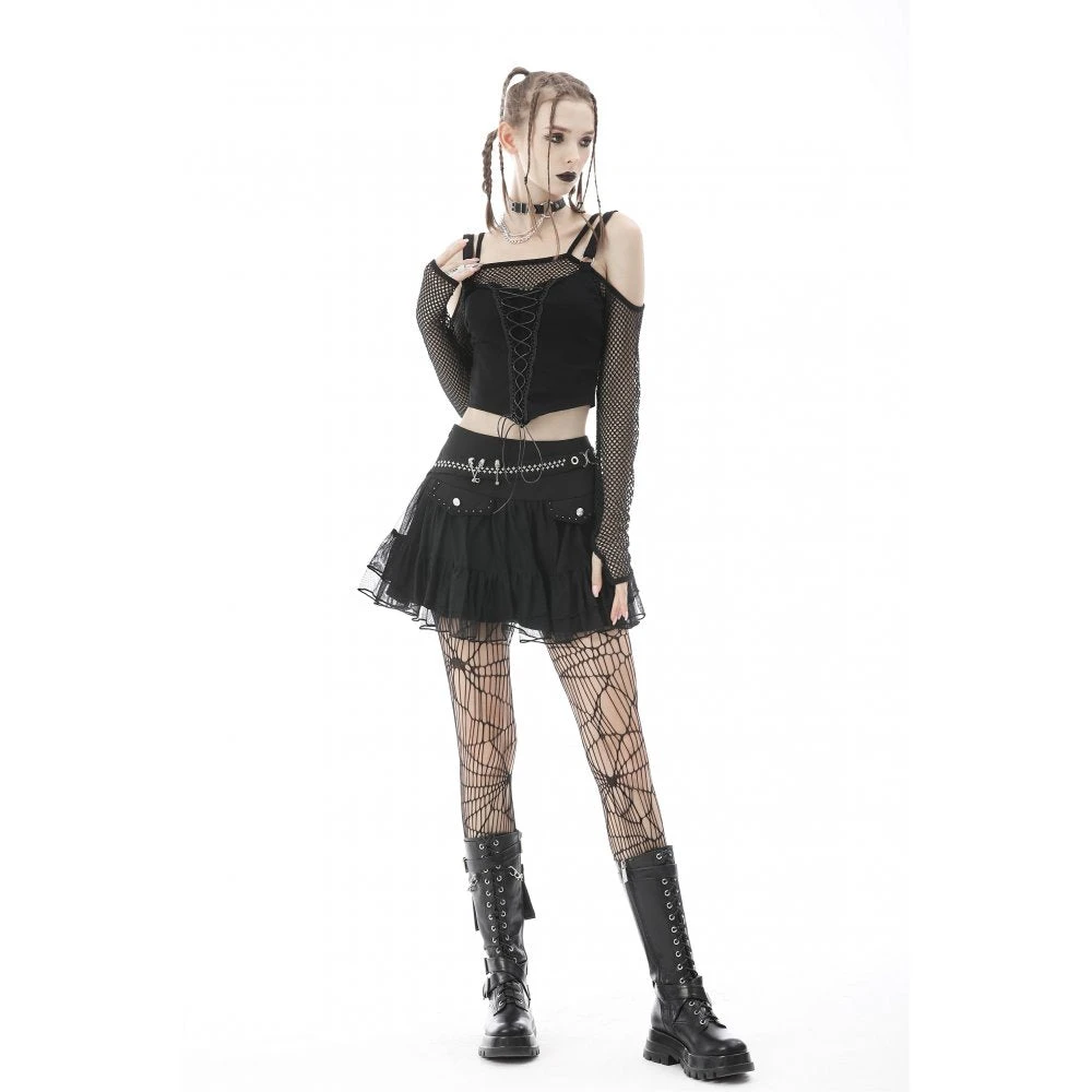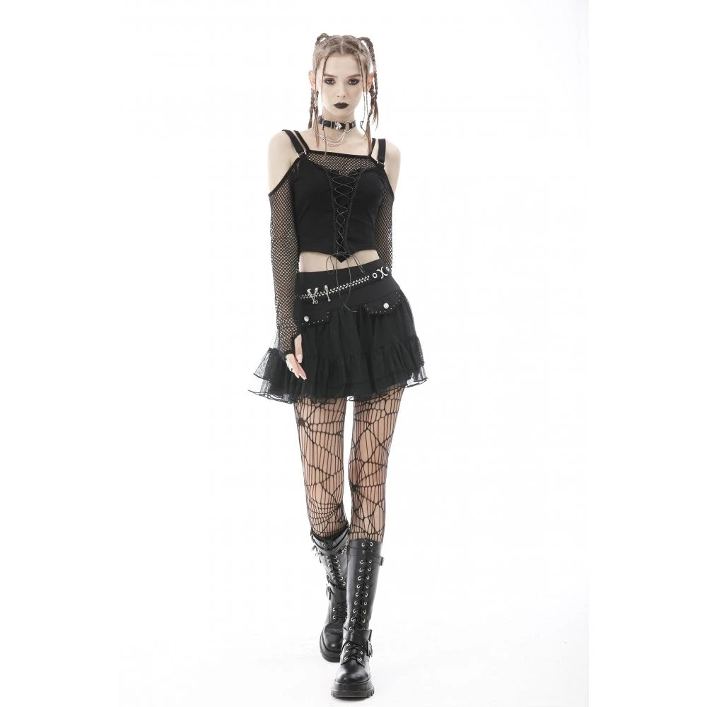 Seductive and stylish black long sleeve top from Dark in Love made from a soft stretchy cotton fabric in a body hugging fit! This versatile and edgy cropped top features a 2 layer effect with fishnet thumbhole sleeves and underlayer and corset style solid body. Looks amazing worn with a skirt or skintight trousers!