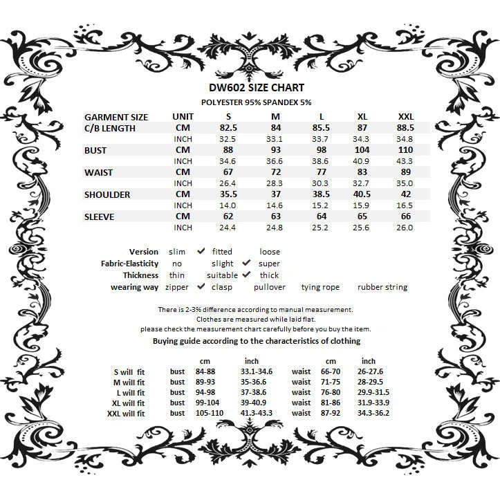 For the perfect fit please see Dark in Love’s size guide in the images.