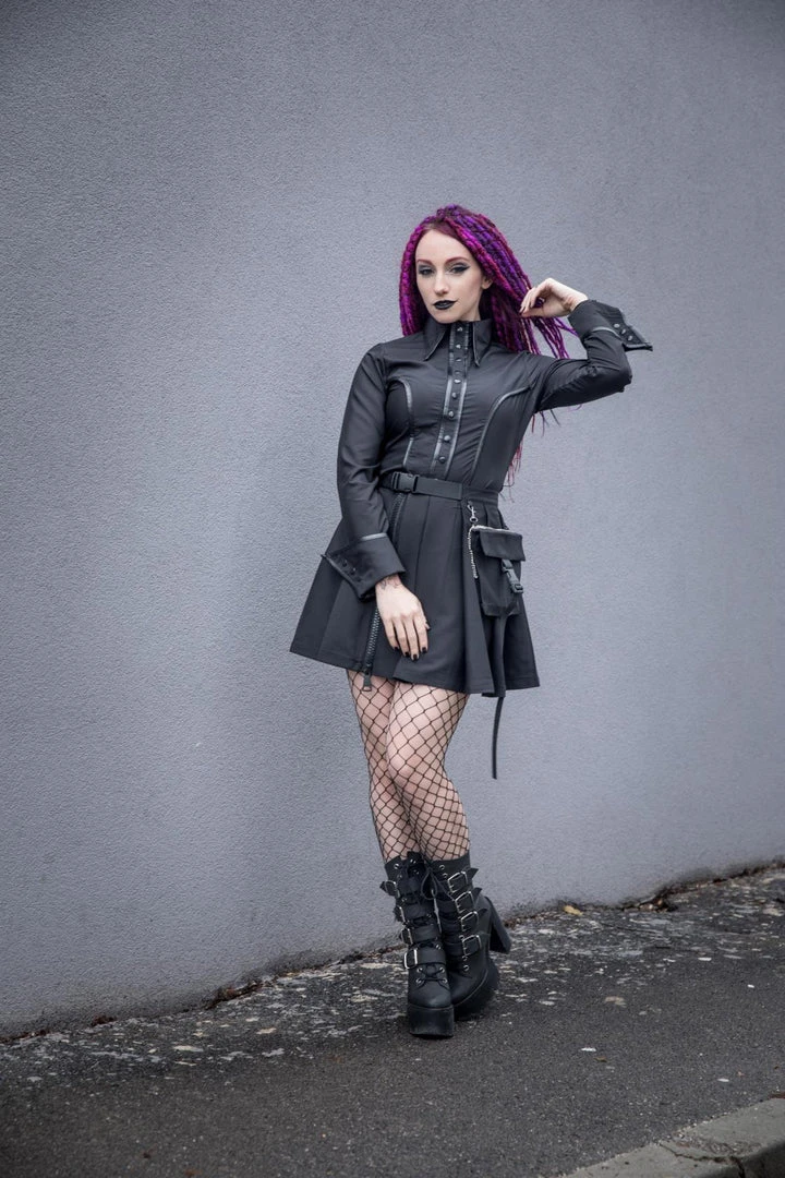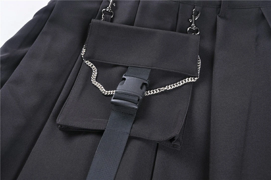 This fabulous pleated skirt from Dark in Love features a full length chunky front zip with fixed waist belt, detachable bag with buckle closure and decorative chain. Perfect for everyday wear or dress up for nights out. For the perfect fit and fabric composition, please see Dark in Loves size guide in the images.