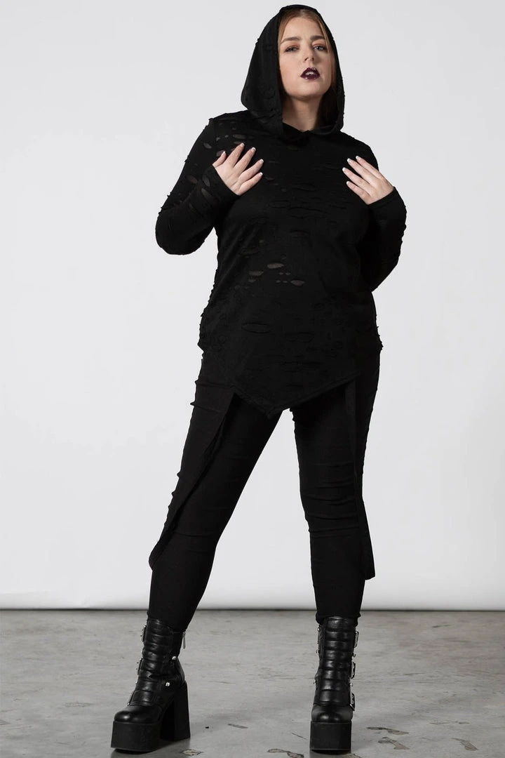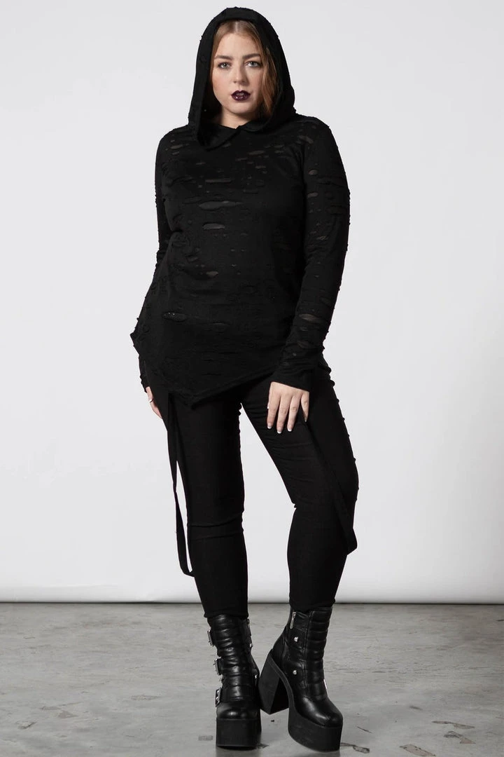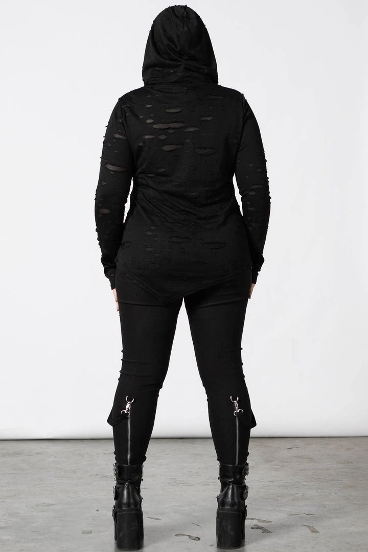 Stunning black hooded top from Killstar made from a soft touch fabric with distress detailing and just the right amount of stretch.