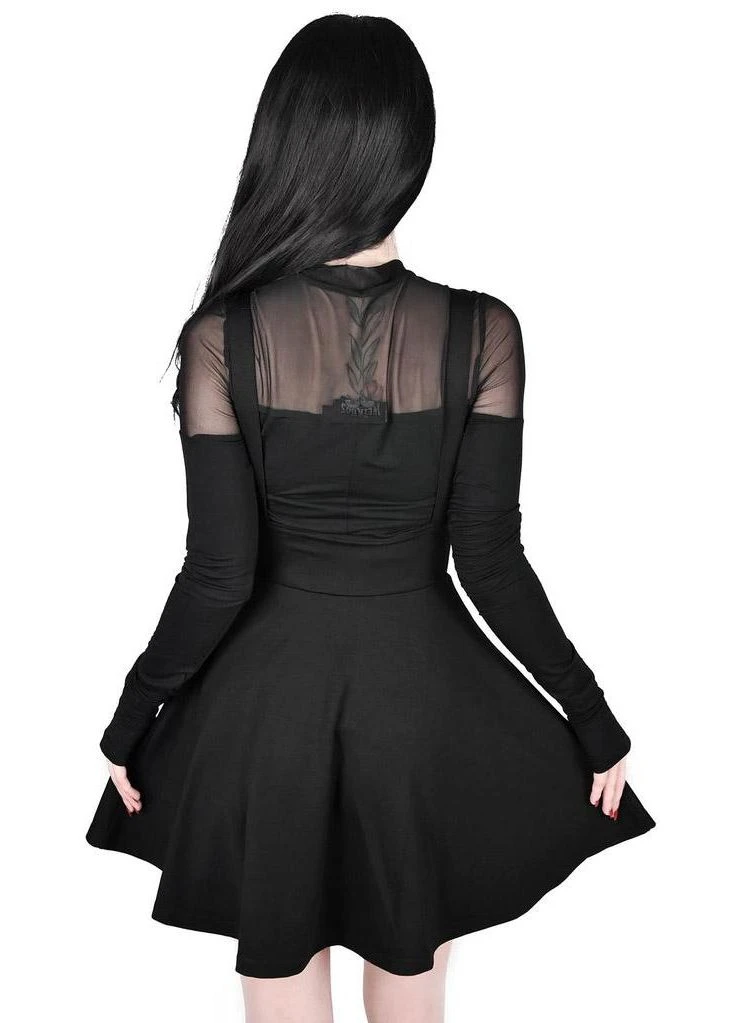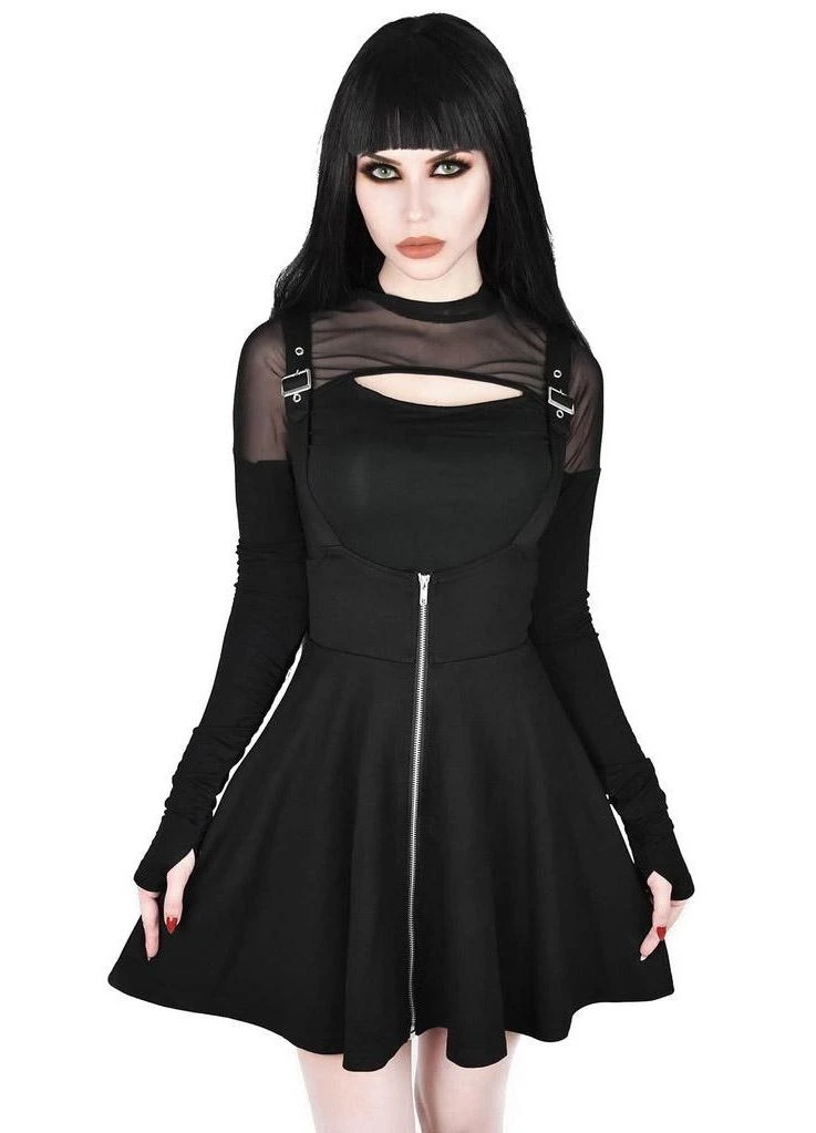 The stunning Suspend Me skirt from Killstar features a super flattering flared skater fit as well as a full-length front zip and adjustable buckle suspender straps. Pair with your favourite top for an awesome everyday Goth look.