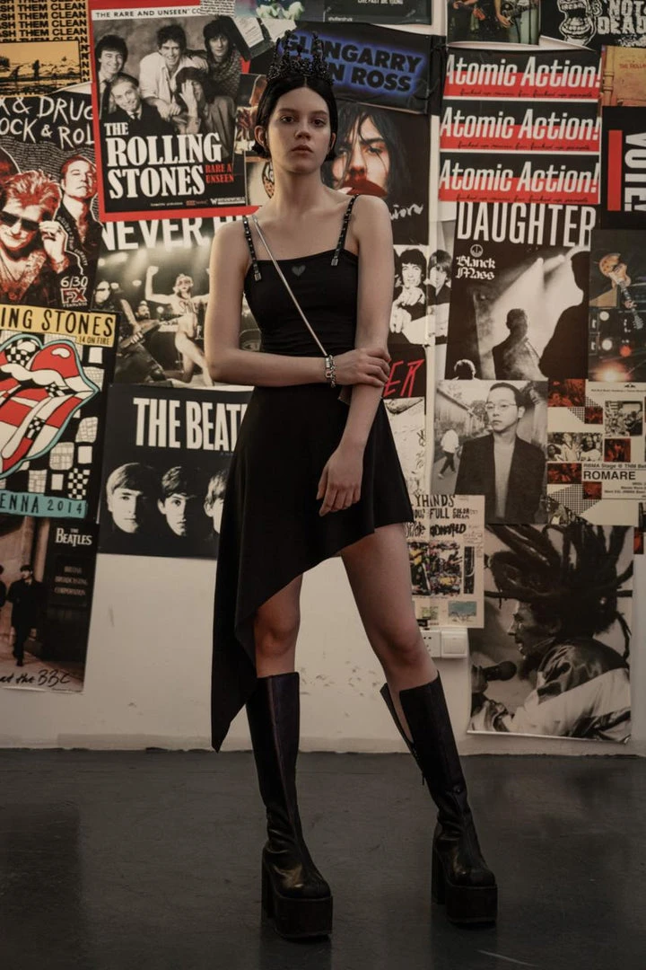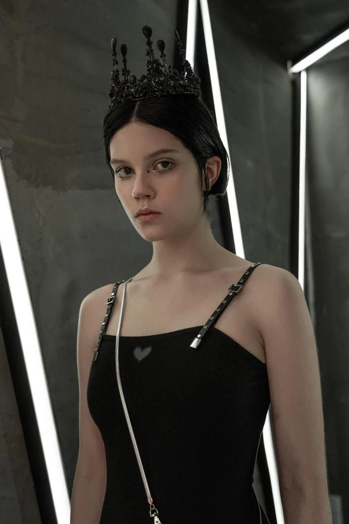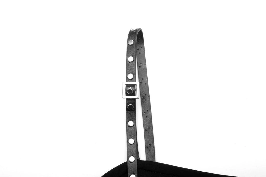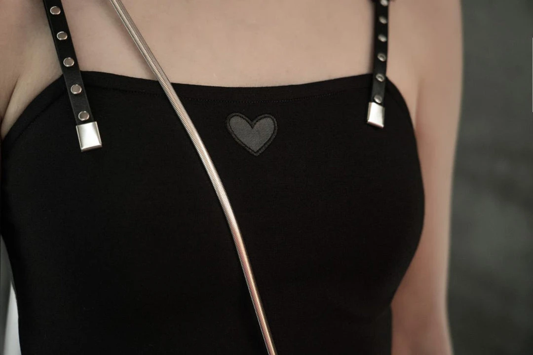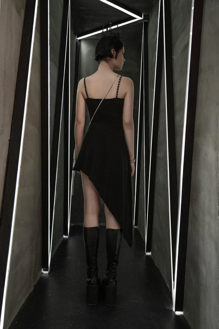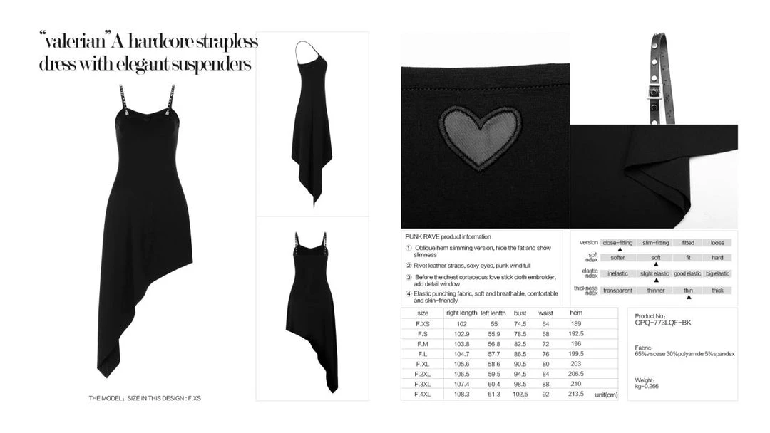 Gorgeous little black dress from Punk Rave! Featuring faux leather spaghetti straps with rivet detailing and a asymmetric hemline. This lovely dress has a flattering fit and the cute heart detail gives that finishing touch. For the perfect fit please see Punk Rave’s size guide in the images.