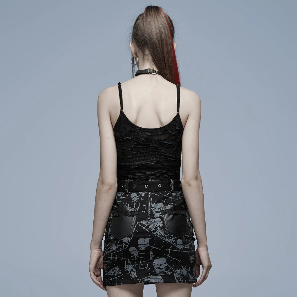 Stunning black camisole vest top from Punk Rave. This must-have textured top is made from a soft elastic knitted fabric that shows off your figure and features skull detailing on the front. Stylish and versatile, this top goes with everything and also features an adjustable shoulder strap for the perfect fit!