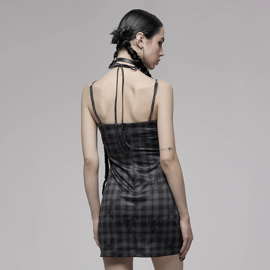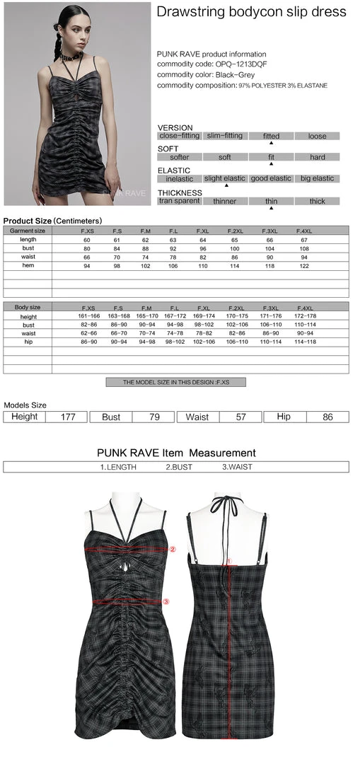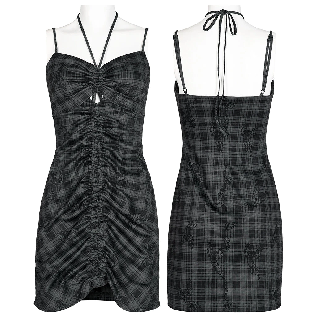 Absolutely gorgeous black and gray plaid bodycon mini dress from Punk Rave. This knockout dress is made from a soft slightly stretchy fabric that is fitted to show off your figure. This lovely sleeveless dress features a drawstring, adjustable straps and ruched styling with peek a boo cut out under the bust.