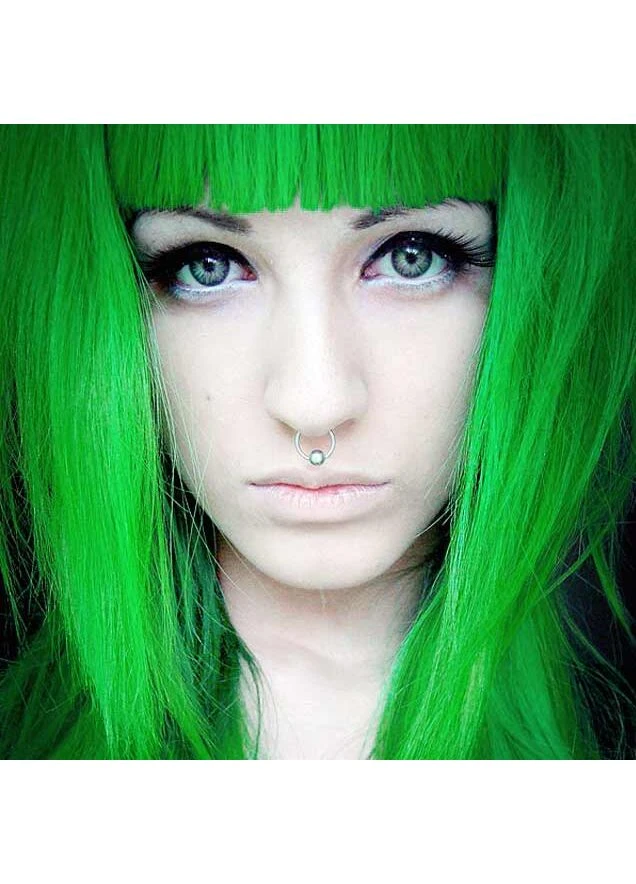 Electric Lizard is an ultra bright toxic green shade, which reacts under UV light for eye-popping colour intensity! This vibrant light green shade works best on a bleached blonde base.