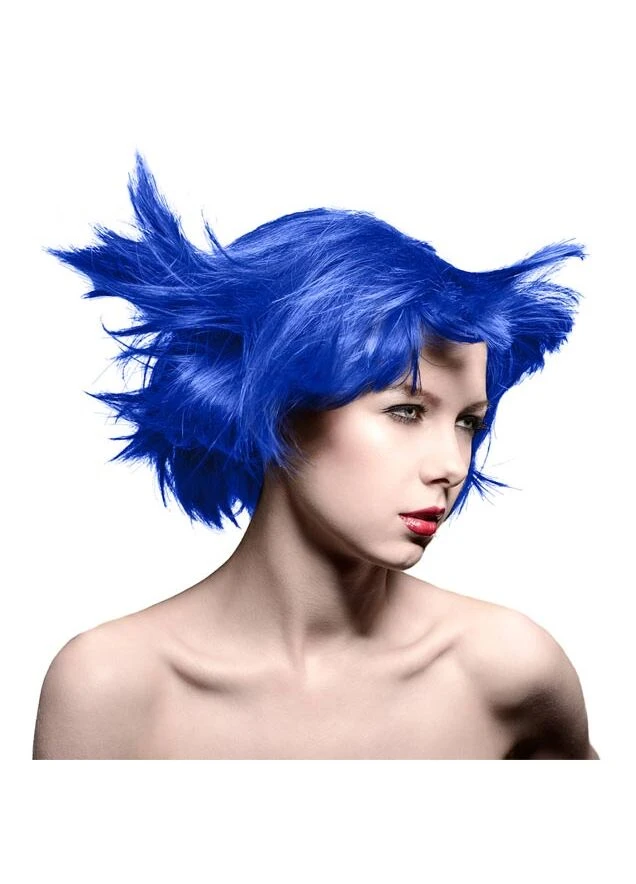 Rockabilly Blue from Manic Panic is their strongest and most intense blue, a favourite of Arch Enemy singer Alissa White-Gluz! This super cobalt blue is perfect if you want to achieve a deeply pigmented, vibrant darker blue shade. Try adding a streak of a contrasting bright colour for a daring two-tone look! This product creates the most vibrant results on bleached hair, and on unbleached hair the results will be more subtle.