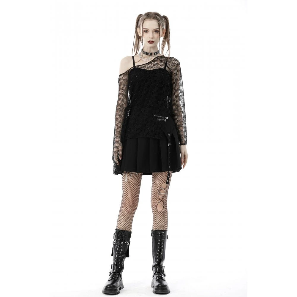 Fabulous relaxed fit net top from Dark in Love featuring long sleeves and an asymmetric hemline. For the perfect fit and fabric composition, please see Dark in Loves size guide in the images.