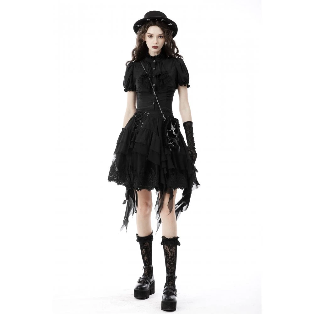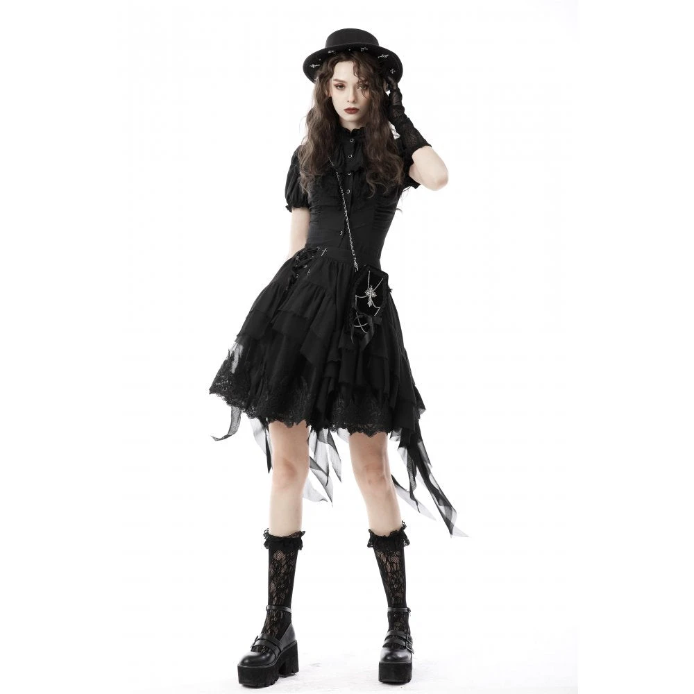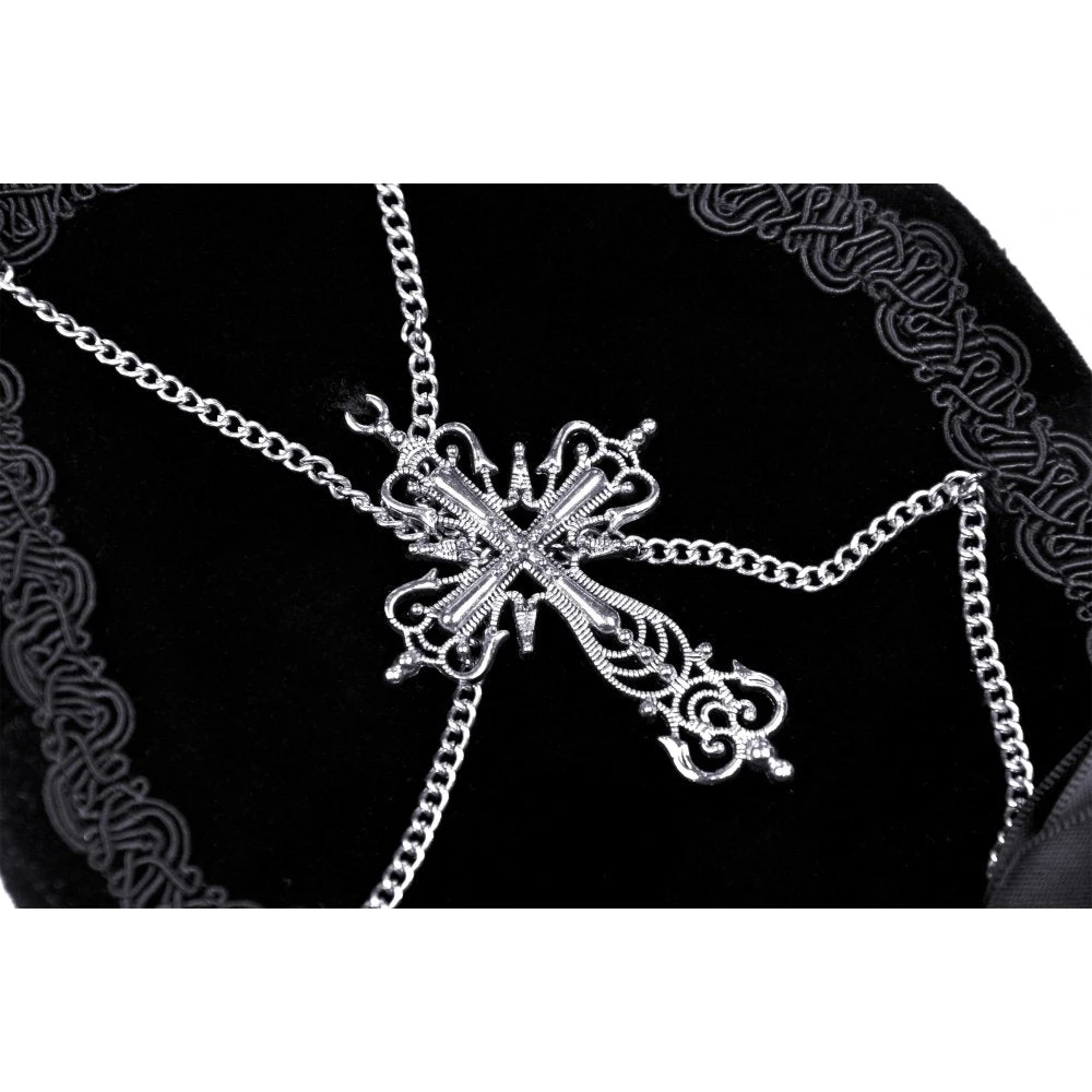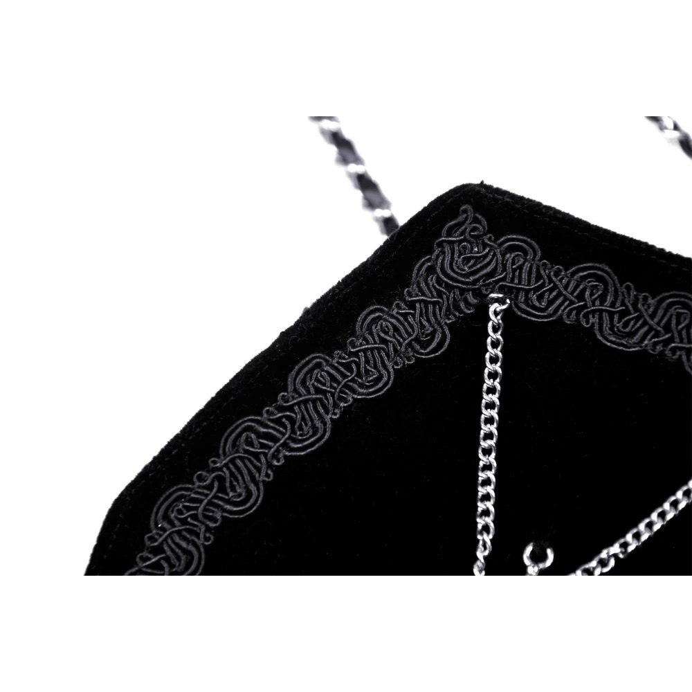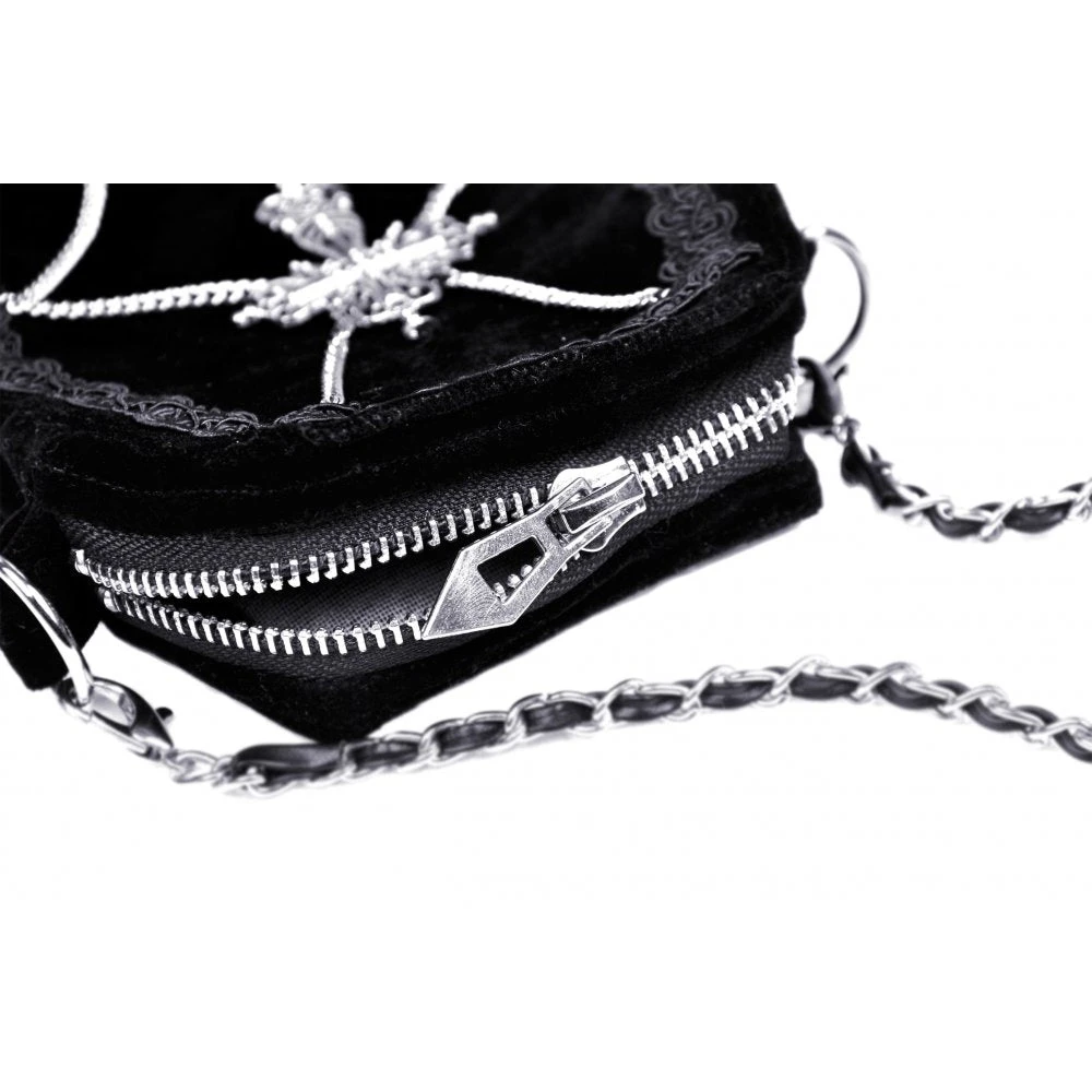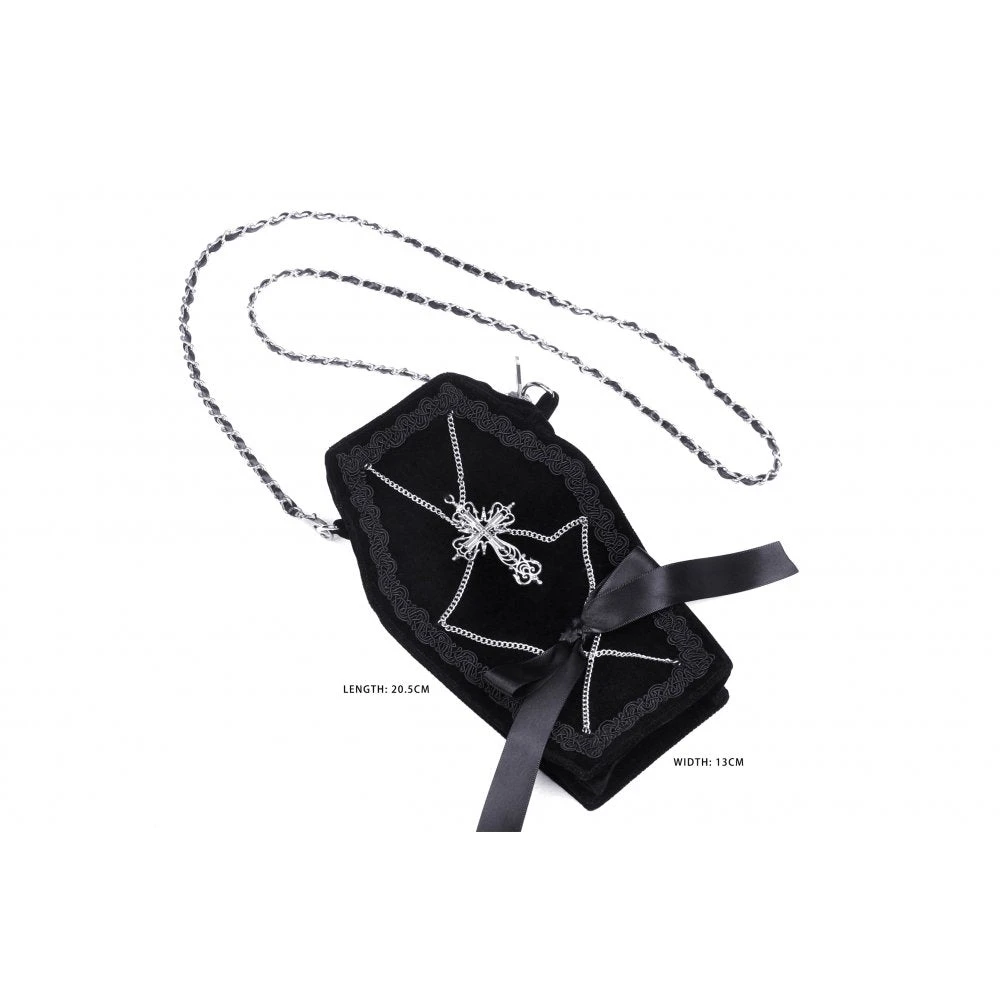 Perfect little black bag from Dark in Love featuring an ornate cross and chain detail. With zip closure and with a detachable chain strap, this little bag is great for carrying the bare essentials. For the fabric composition and approximate measurements, please see Dark in Loves size guide in the images.
