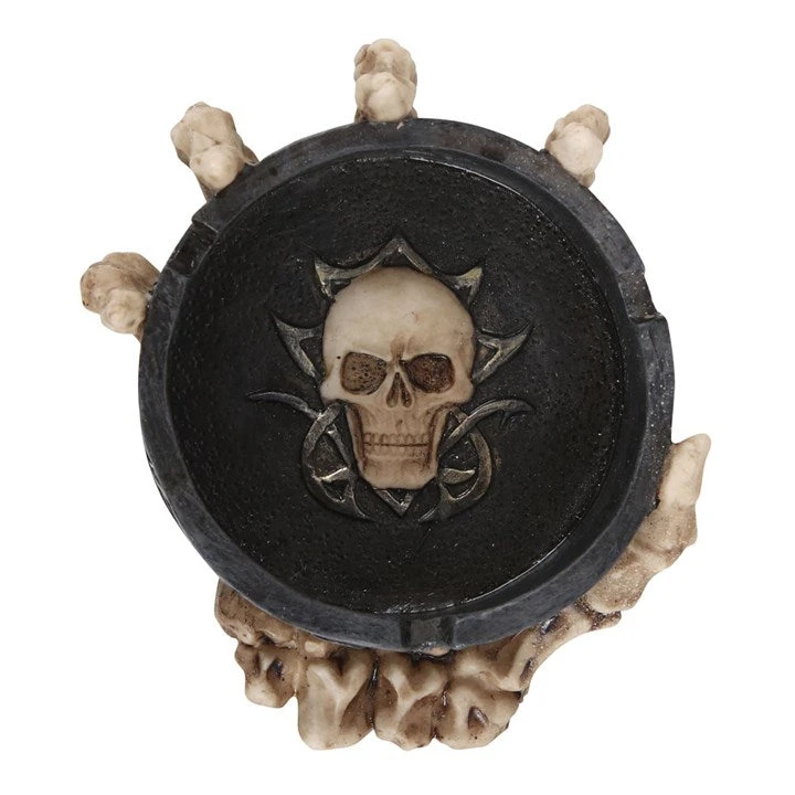 Stunning gothic ashtray! This awesome resin ashtray features a skull design on the inside and knots around the outside edges all held in a creepy skeleton hand. Sturdy and robust, this skeleton hand ashtray is a great gift for yourself, or a loved one and will keep your home clean and ash free.