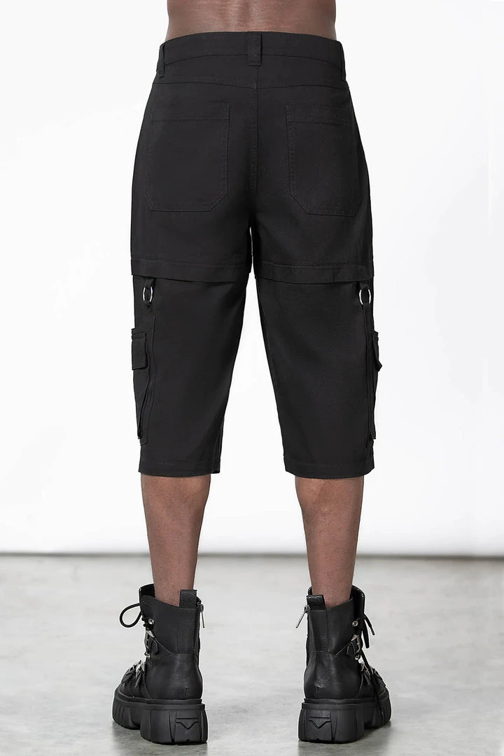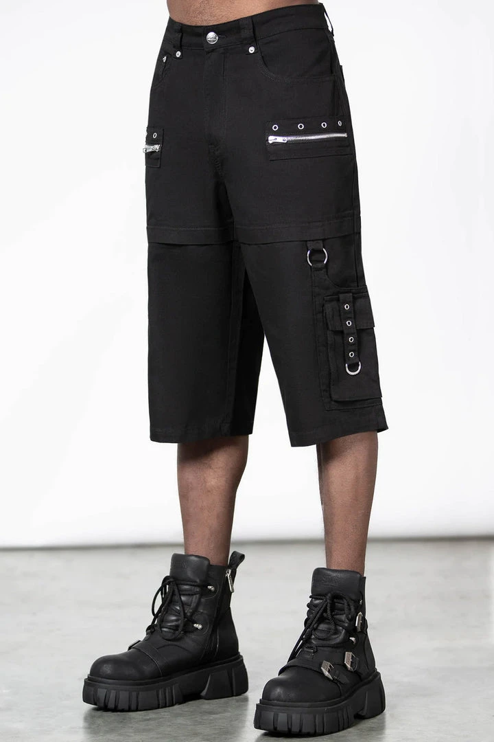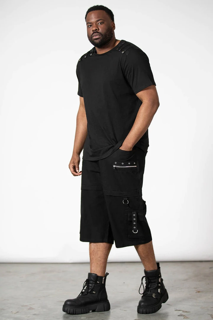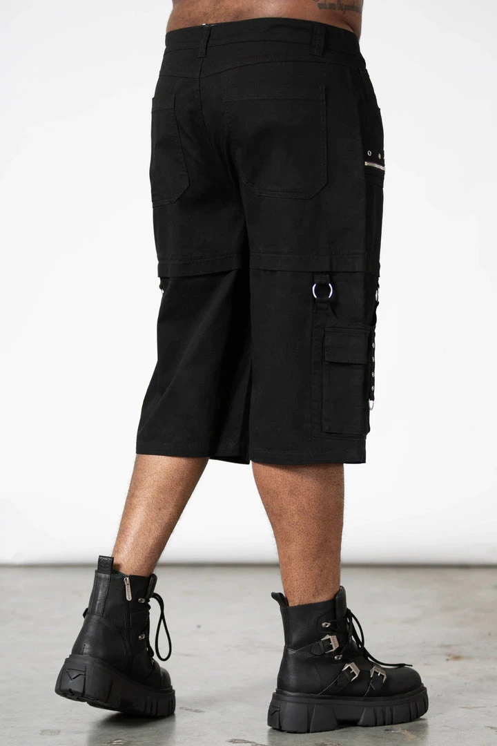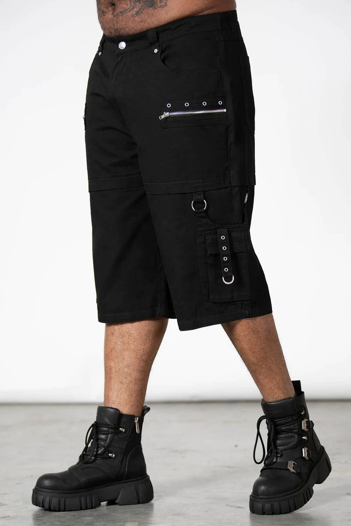 These essential black cargo short from Killstar are made from a soft, comfortable non stretch denim fabric with a relaxed fit. These versatile extra long length black shorts feature large cargo pockets, a zip and button fly, belt loops and metal hardware details!