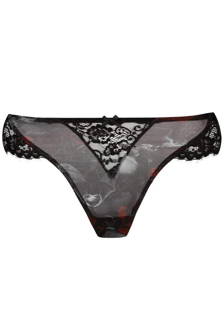 Gorgeous black panty from Killstar that is made from a stretch lace and print mesh fabric for a fit that is both seductive and powerful! This stunning panty back panty features stretch straps and a lined gusset and looks amazing on! Don’t forget to buy the Wild Rose Mesh Bra for the complete set! Oh la la!