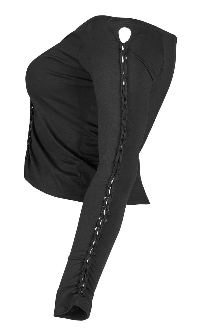 Beautiful bardot top from Punk Rave featuring long sleeves with braided detail and braided chain detail to the front. For the perfect fit and fabric composition, please see Punk Rave’s size guide in the images.