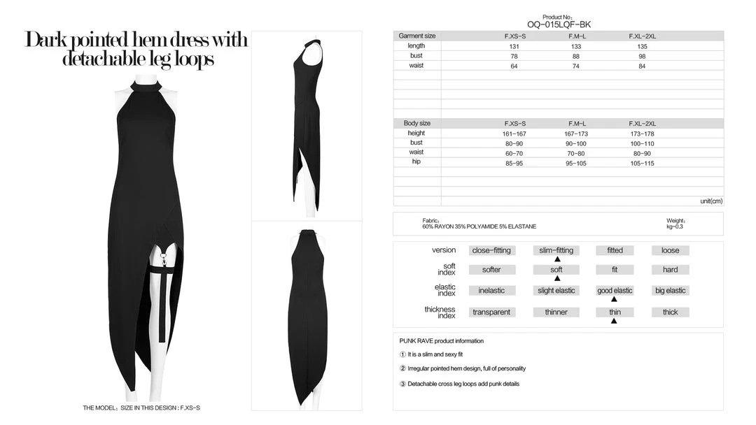 Beautiful soft stretch dress from Punk Rave featuring an asymmetric design with detachable garter and fastening with a concealed zip to the back. For the perfect fit and fabric composition, please see Punk Rave’s size guide in the images.