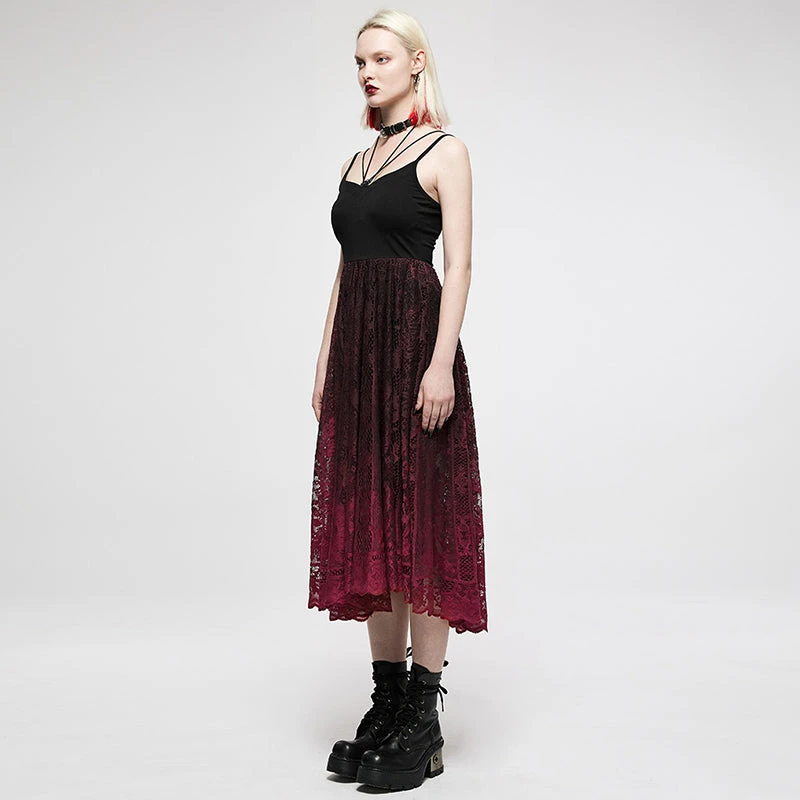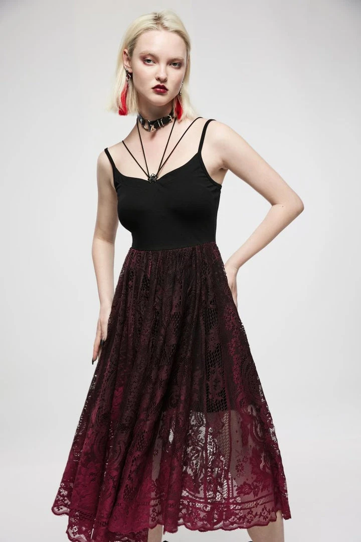 Stunning midi dress from Punk Rave featuring adjustable spaghetti straps and strap detailing. With a gorgeous lace skirt and beautiful rose pendant to the neckline, this dress looks amazing on. For the perfect fit and fabric composition, please see Punk Rave’s size guide in the images.