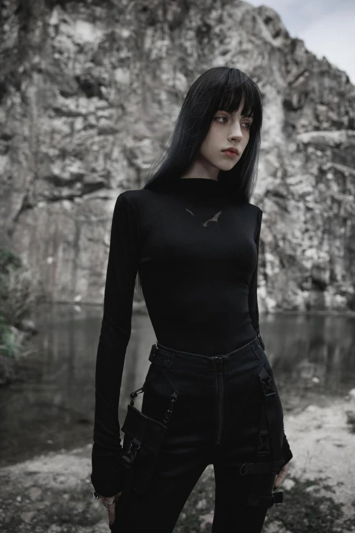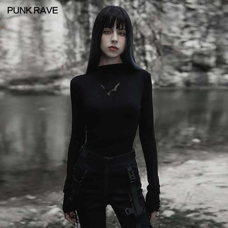 Lovely long sleeve top from Punk Rave featuring ruched detail to the cuffs, a high neckline and mesh backed flying bat cut-out. For the perfect fit and fabric composition, please see Punk Rave’s size guide in the images.