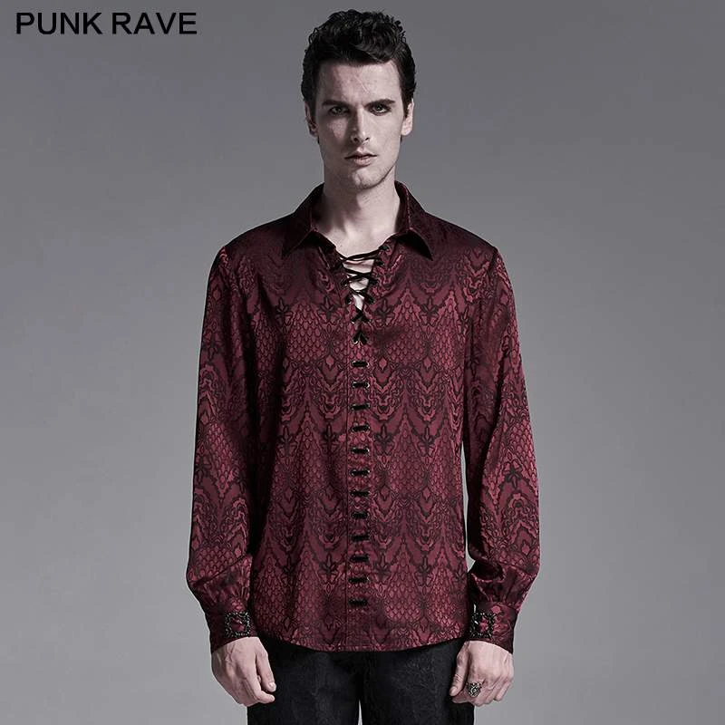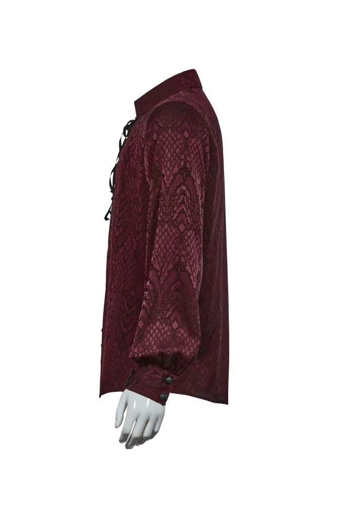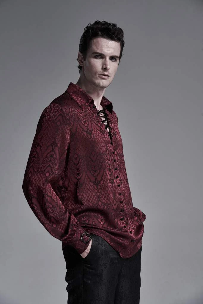 This stunning jacquard shirt from Punk Rave is a definite must-have. This lightweight satin shirt features long bubble sleeves, button fastened cuffs with ornate buckle detail, V-neck with velvet ribbon lacing and ornate eyelets. For the perfect fit please see Punk Rave’s size guide in the images.