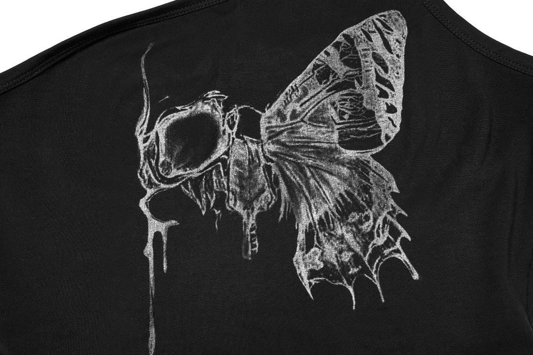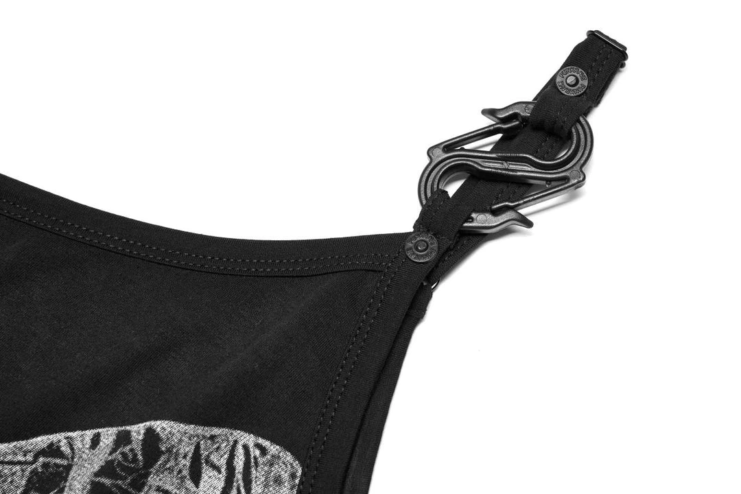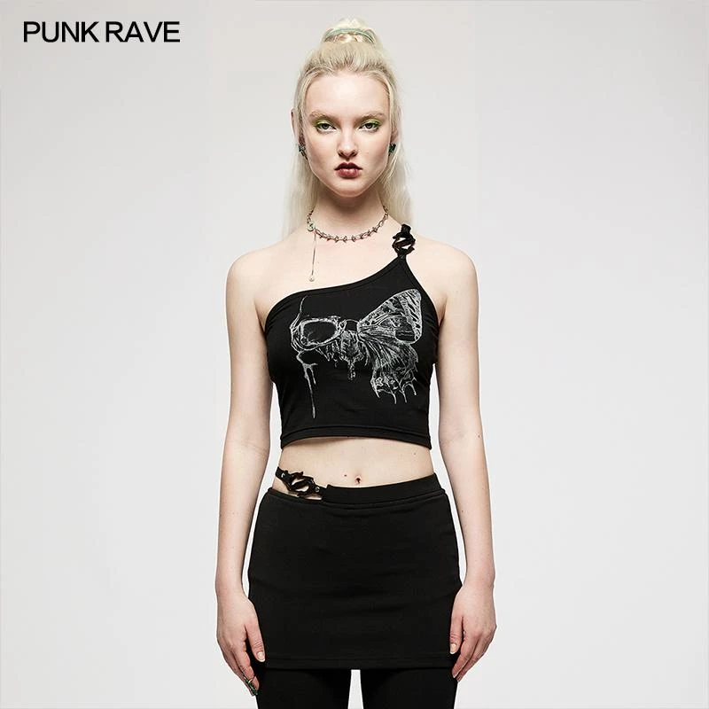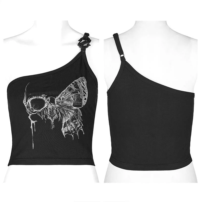 Beautiful asymmetric crop top from Punk Rave! This lovely soft stretch top has an S shaped buckle on the single spaghetti strap and a stunning skull butterfly print. For the perfect fit and fabric composition, please see Punk Rave’s size guide in the images.