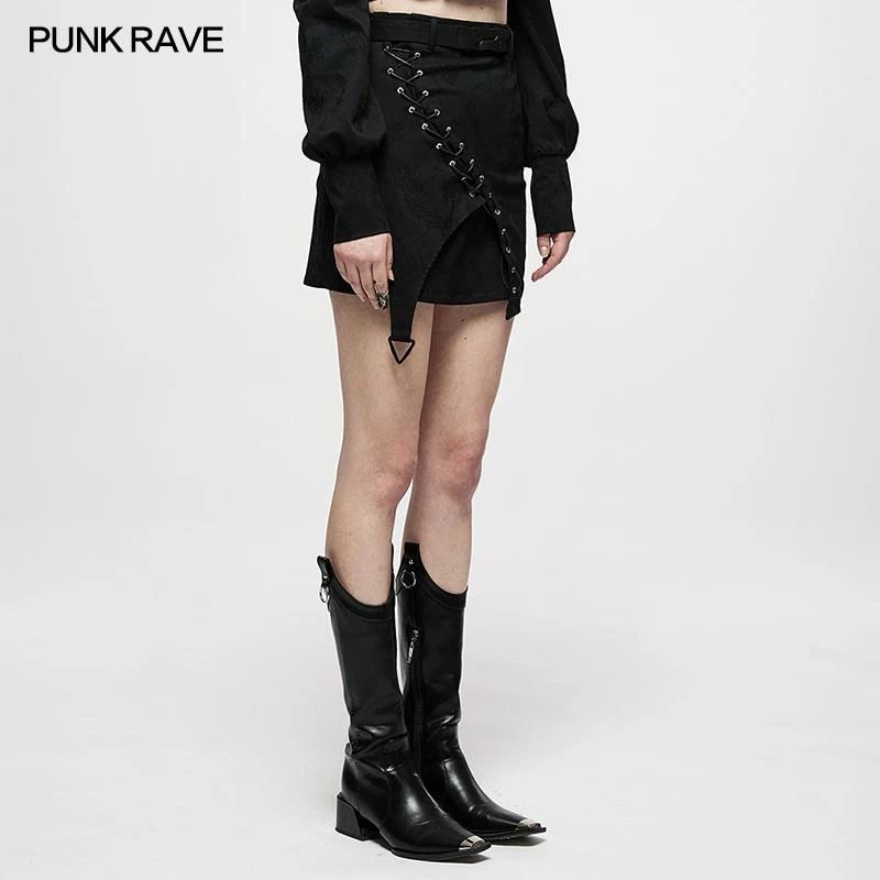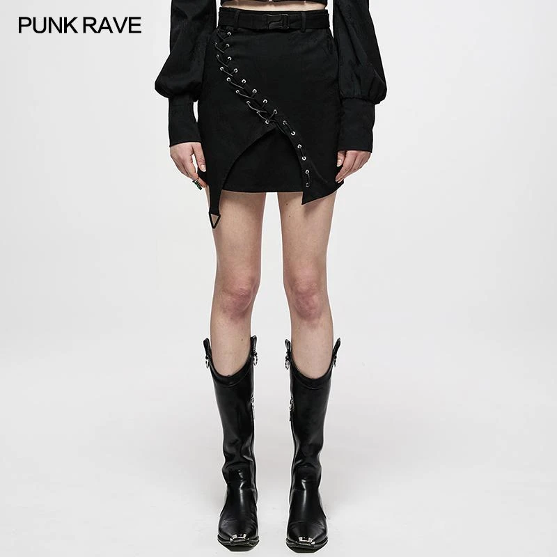 This stunning asymmetric skirt from Punk Rave features a detachable belt and asymmetric lacing detail. Fastening with a concealed zip to the side, this beautiful skirt looks great dress up or down. For the perfect fit and fabric composition, please see Punk Rave’s size guide in the images.