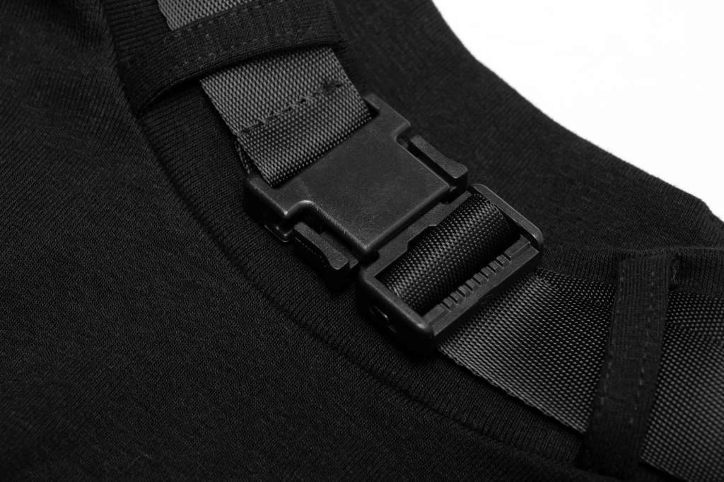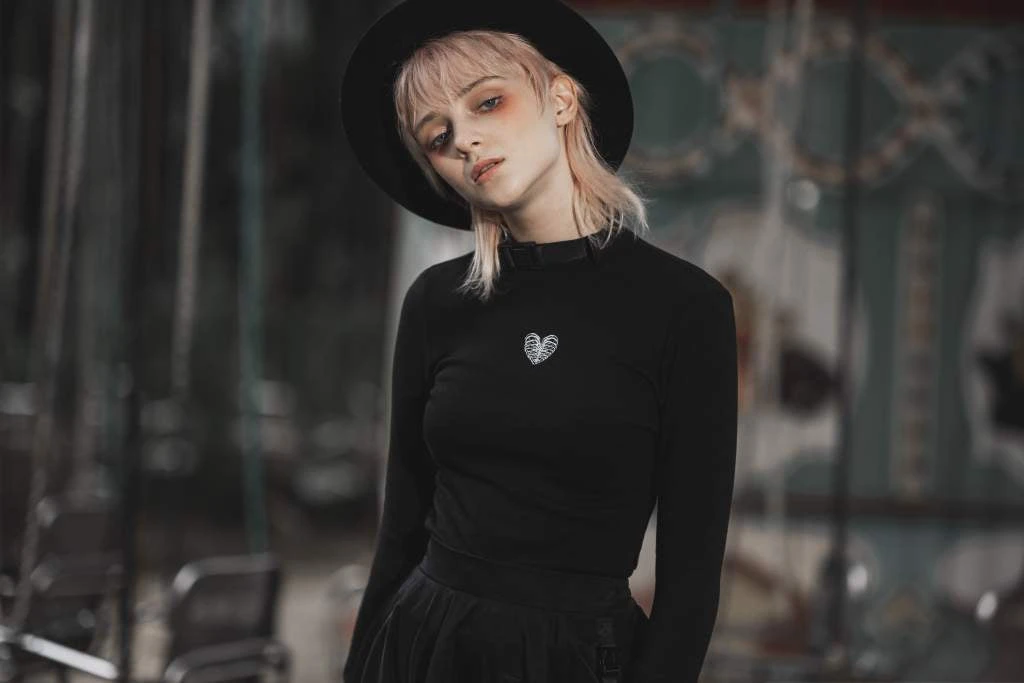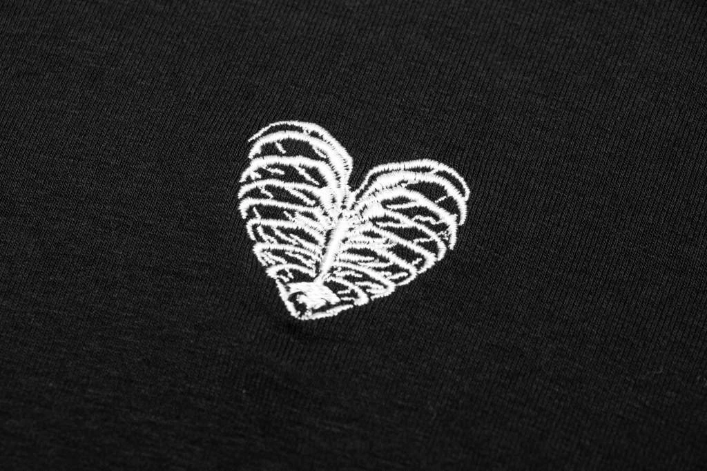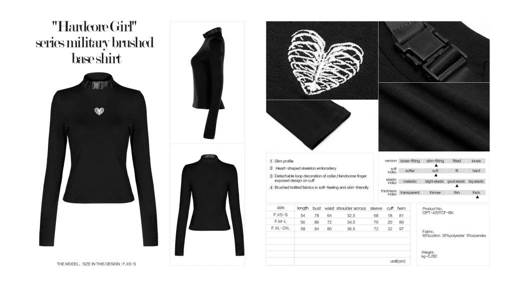 Lovely cotton mix top from Punk Rave featuring long sleeves with thumb holes, high neck with belt loops & detachable belt and a contrasting white embroidered ribcage heart to the chest.