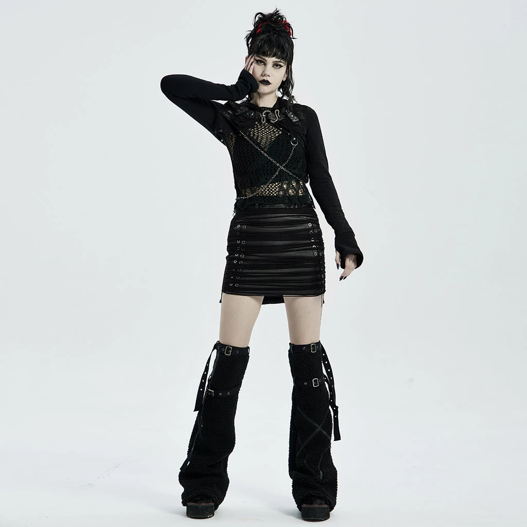 Say hello to the short skirt with plenty of attitude! Badass skirt made of PU faux leather woven fabric with a top layer of slashed elastic fabric. Features metal eyelets running down both sides at the front, belt loops so that you can accessorize and side zip for fastening. The back of the skirt is 2-4cm longer to preserve our modesty when bending and the skirt has two front and two back pockets…of course!