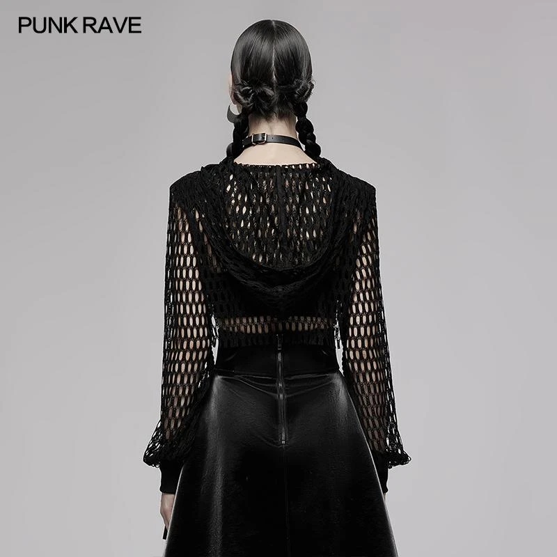Striking large mesh hoodie from Punk Rave featuring an oversize hood and long bell sleeves. With cut-out detail and a frog button fastening, this gorgeous cropped hoodie is the perfect extra layer. For the perfect fit and fabric composition, please see Punk Rave’s size guide in the images.